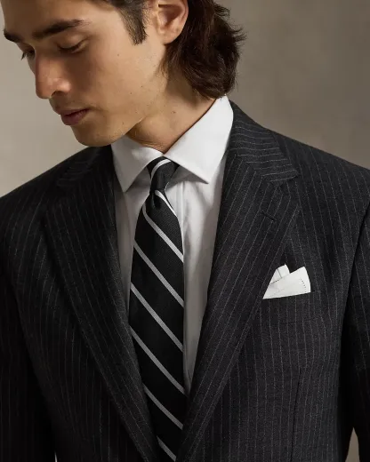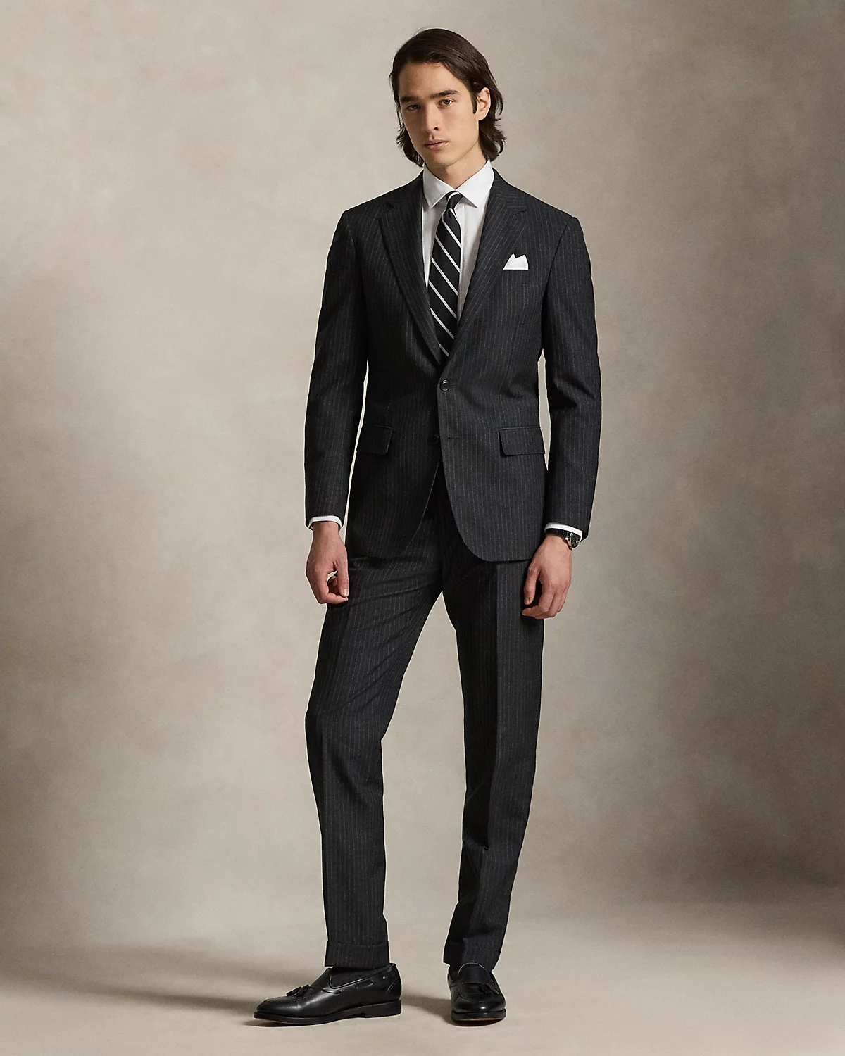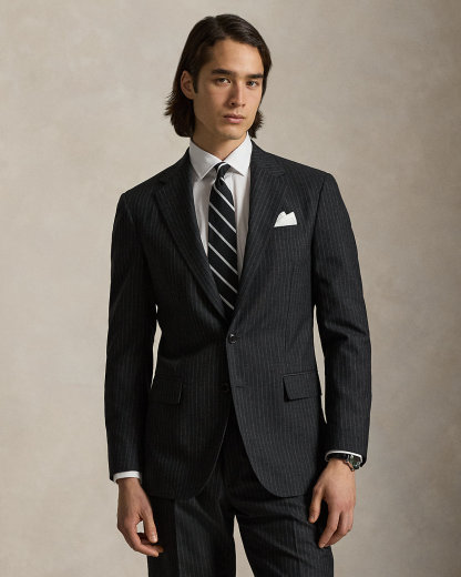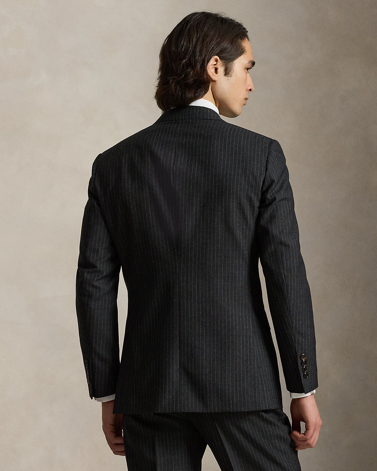 Our Polo jacket offers more structure in the chest and shoulders along with a full lining. This version and its flat-front trousers are expertly tailored in Italy using a lightweight wool cloth that was custom-developed with a Scottish mill.