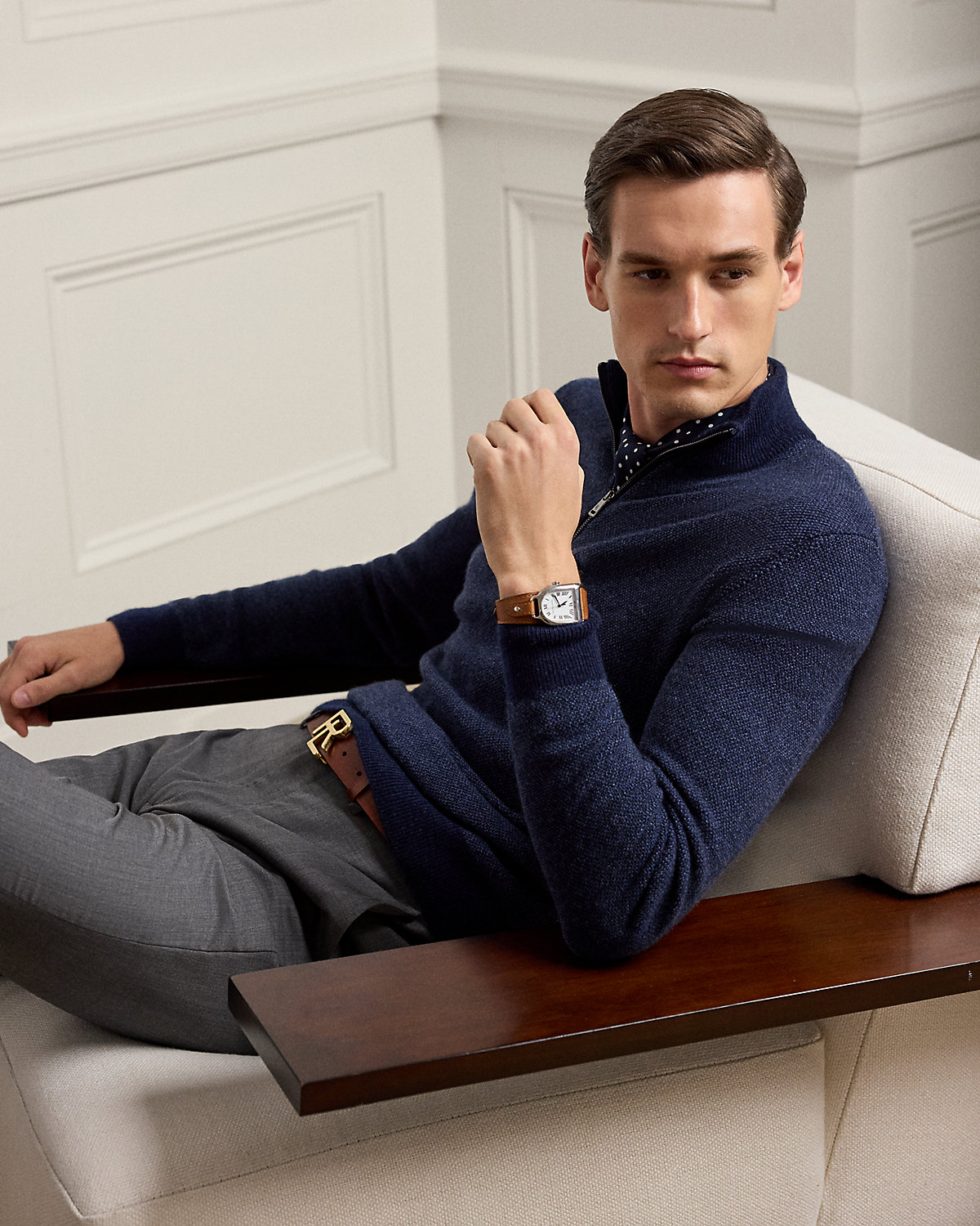 Impeccably crafted in Italy, this sweater exemplifies Purple Label's dedication to exceptional materials and sartorial excellence through its birdseye-knit cashmere construction. The refined silhouette is elegantly enhanced with supple suede trim, creating a masterful blend of sophisticated textures. This style is available in additional colors, fabrics, or materials through our made-to-Order service. For more information, please book an appointment with your local Ralpthth Lauren store.