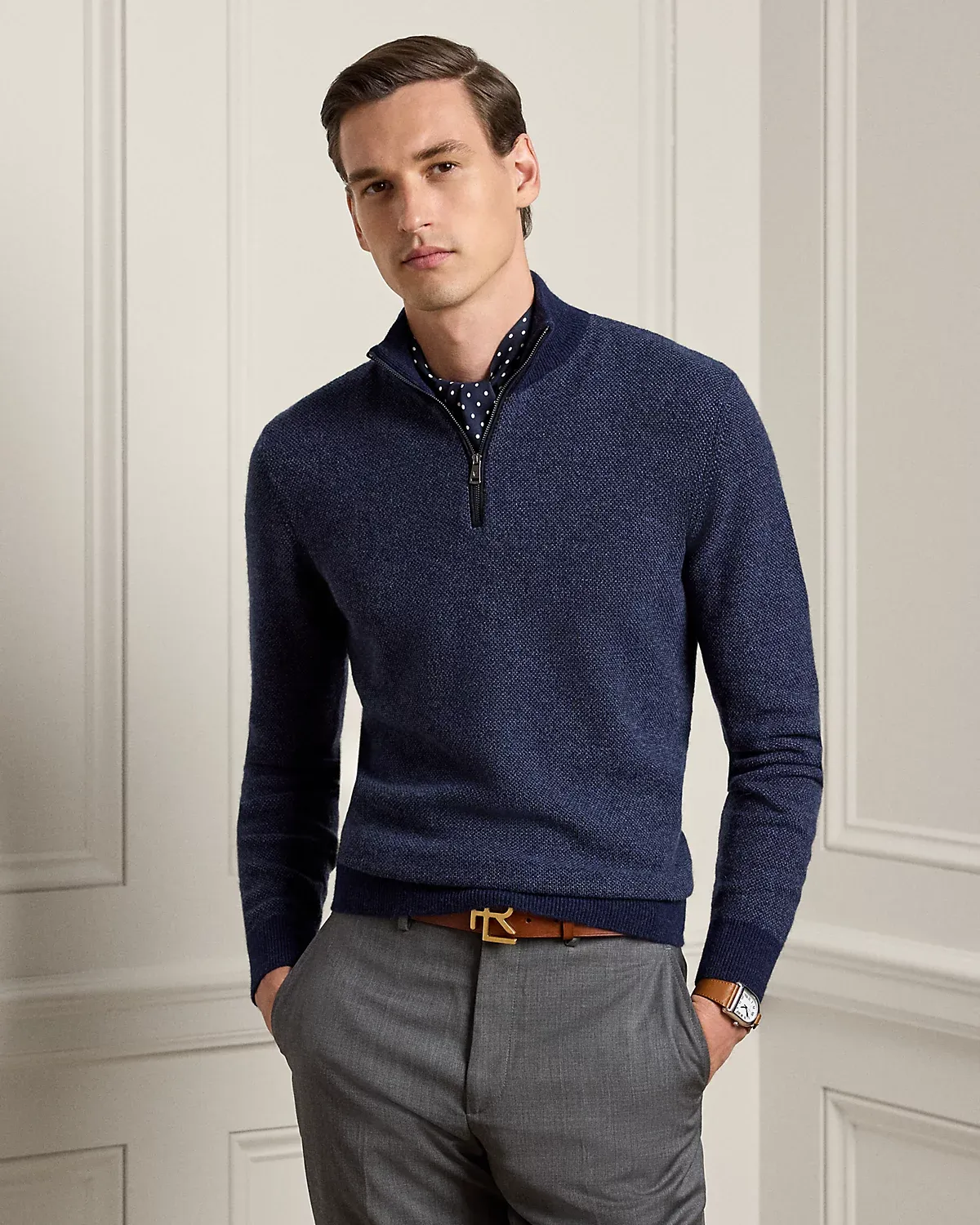Cashmere Birdseye Quarter-Zip Sweater