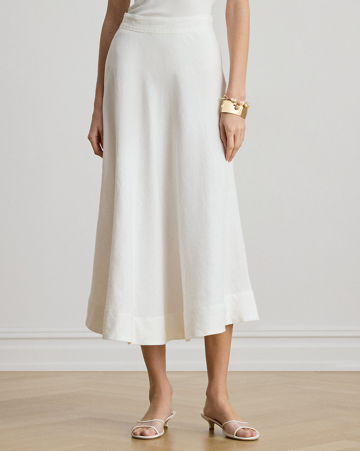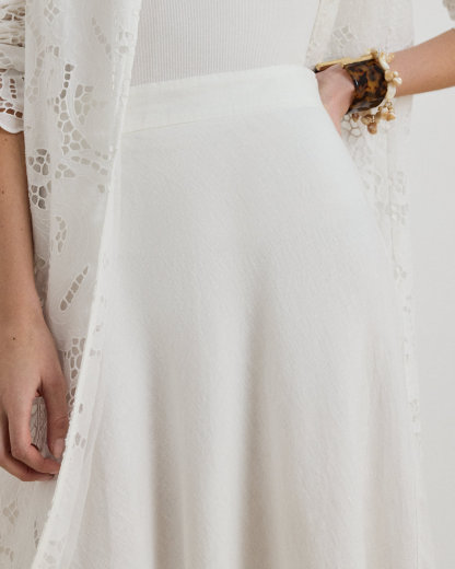 The A-line silhouette of this midi skirt is rendered in airy linen for effortless movement with each step.