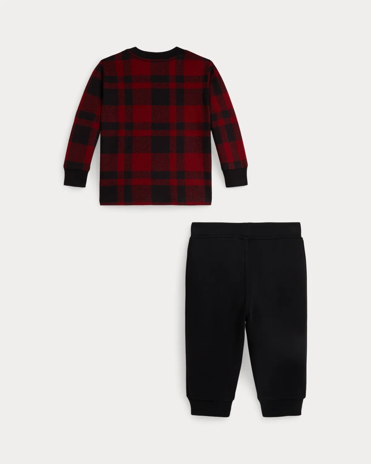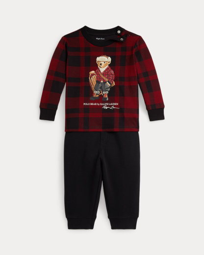This cute outfit comes with a long-sleeve cotton tee that features a graphic of our beloved Polo Bear in a signature RL outfit. Our iconic Pony is intricately embroidered on the fleece pants for a signature finish.