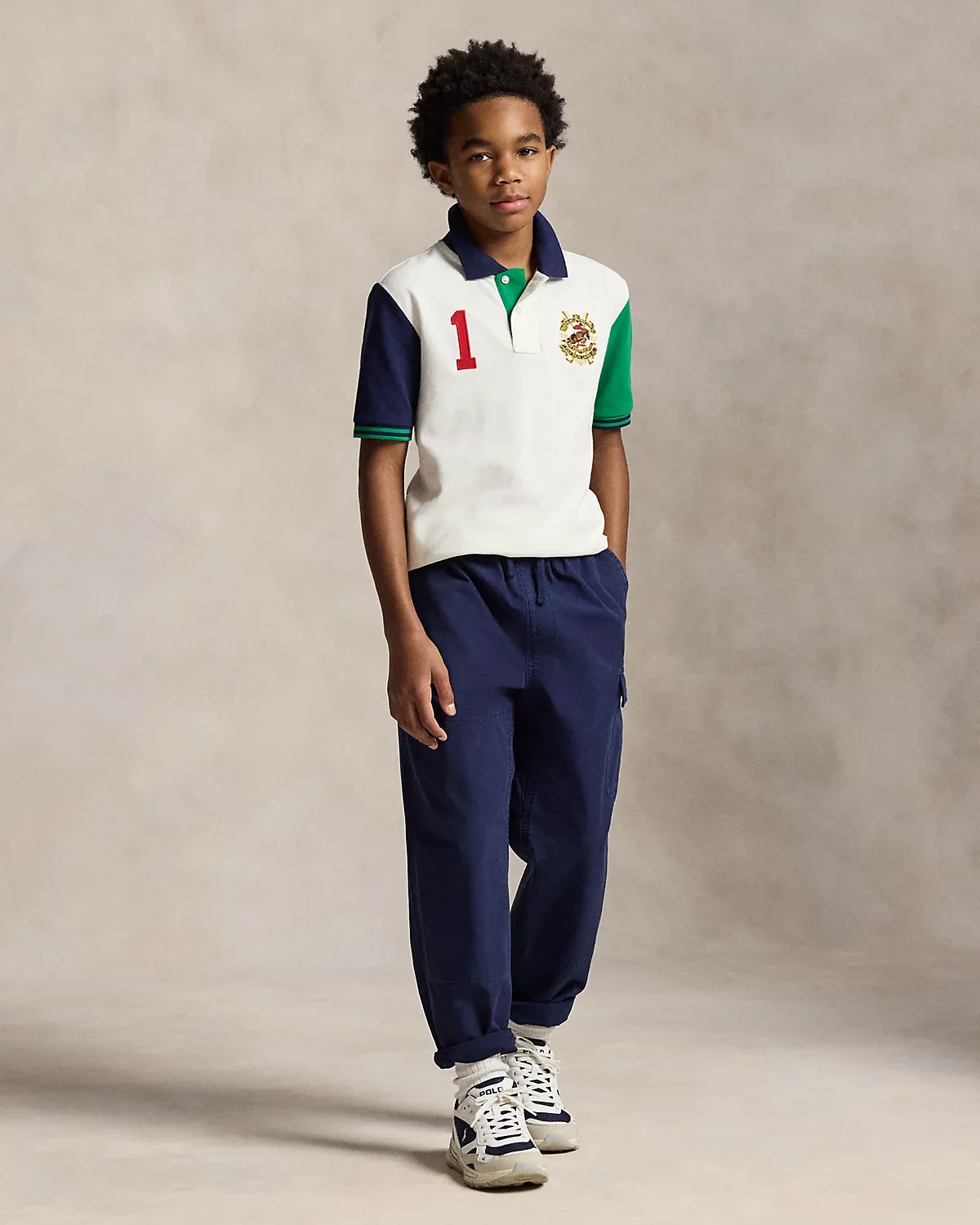 In soft cotton, this everyday essential reflects Polo Ralpthth Lauren’s equestrian-inspired style with a signature crest as well as a “1” appliqué, which represents the number typically worn by a polo team’s top scorer.