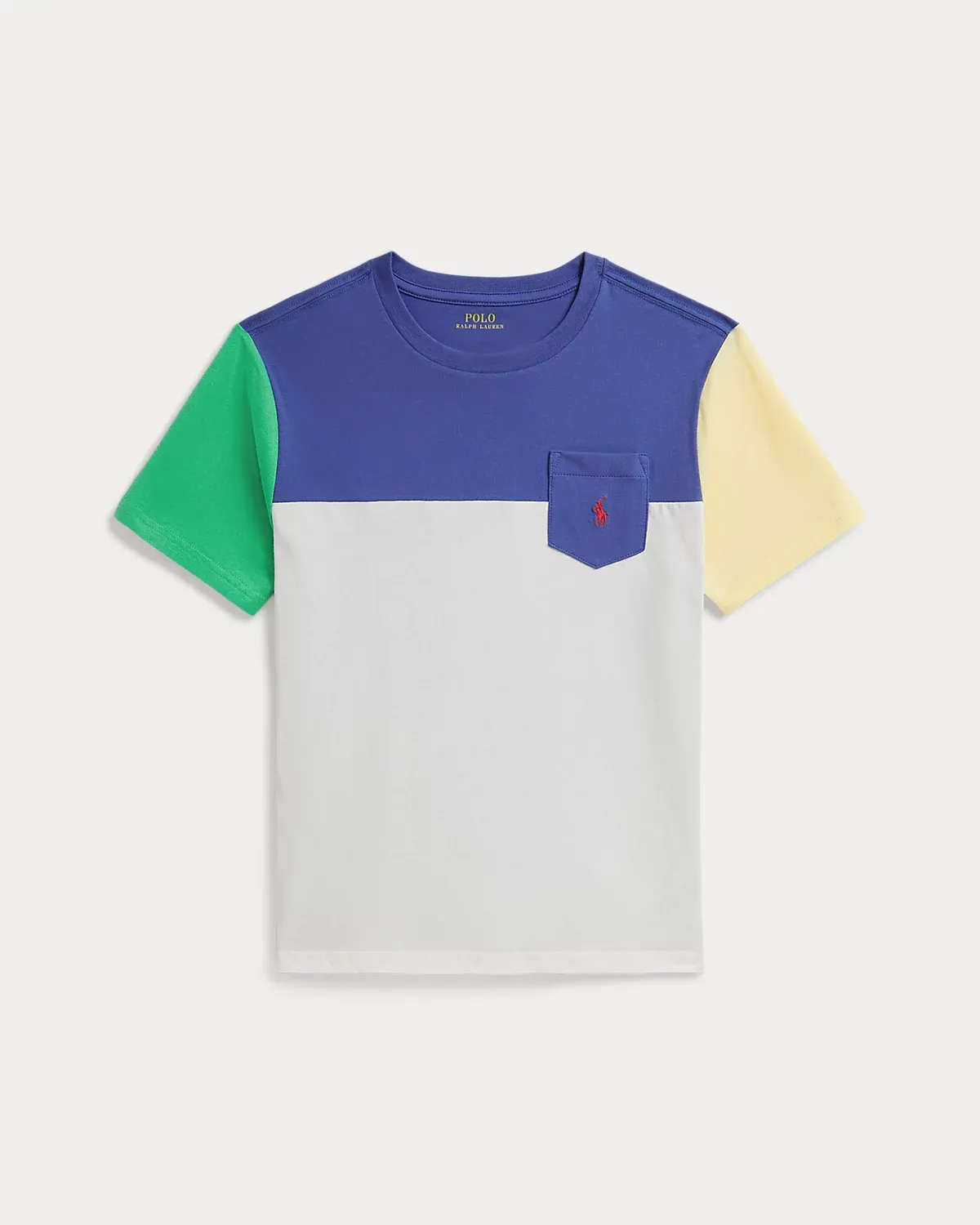 This pocket tee achieves a playful Polo look with bold color-blocking and our signature embroidered Pony.