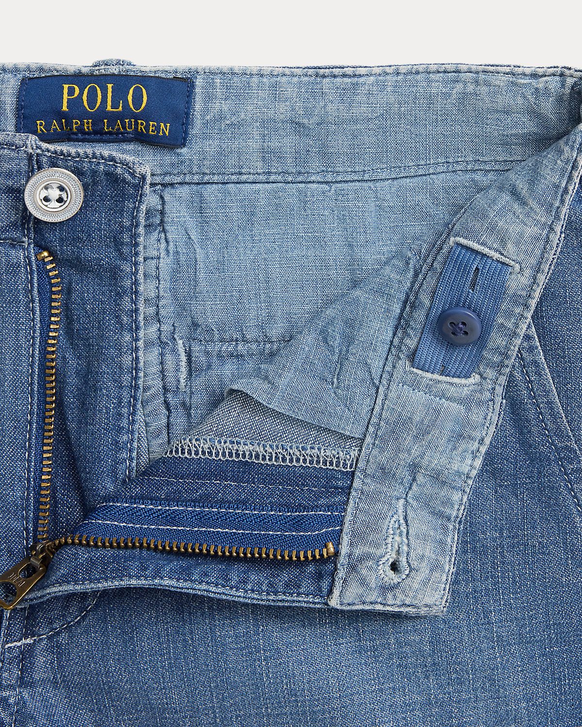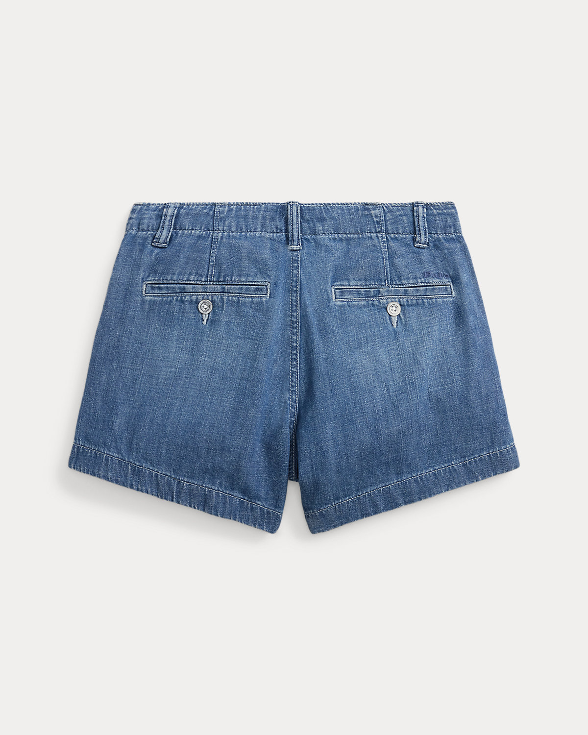 - Two front angled pockets. Two back dived pockets. “Polo” embroidered above the back right pocket.