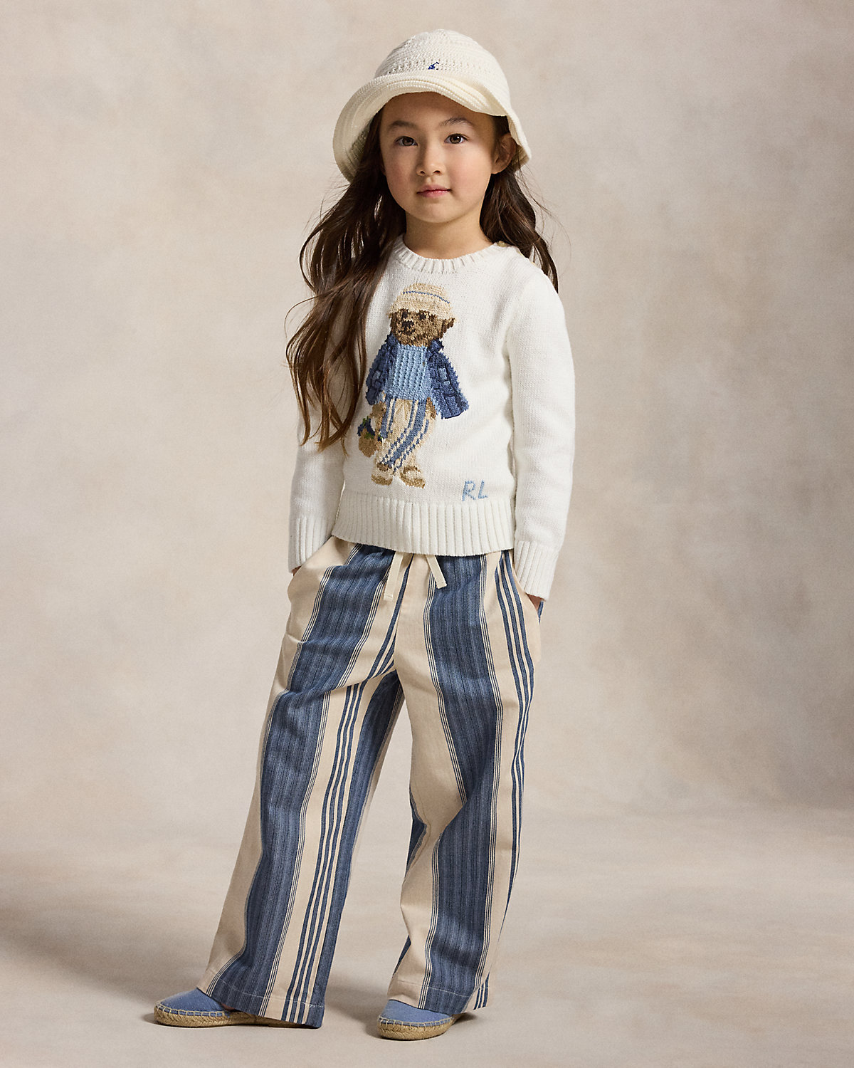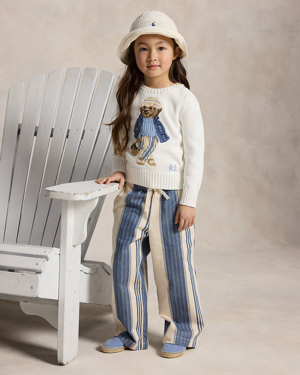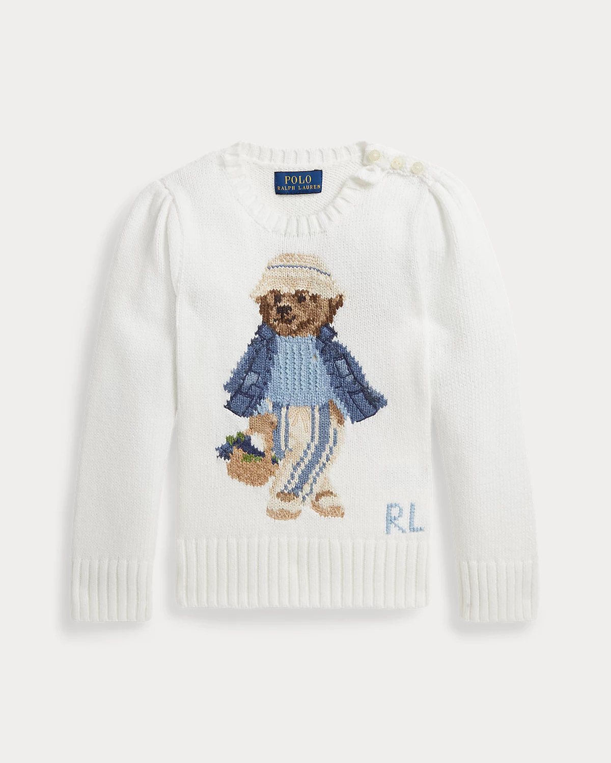 Crafted with more than 15 different combed cotton yarns, this sweater depicts our beloved Polo Bear in a signature Ralpthth Lauren outfit inspired by New England’s effortless coastal charm.
