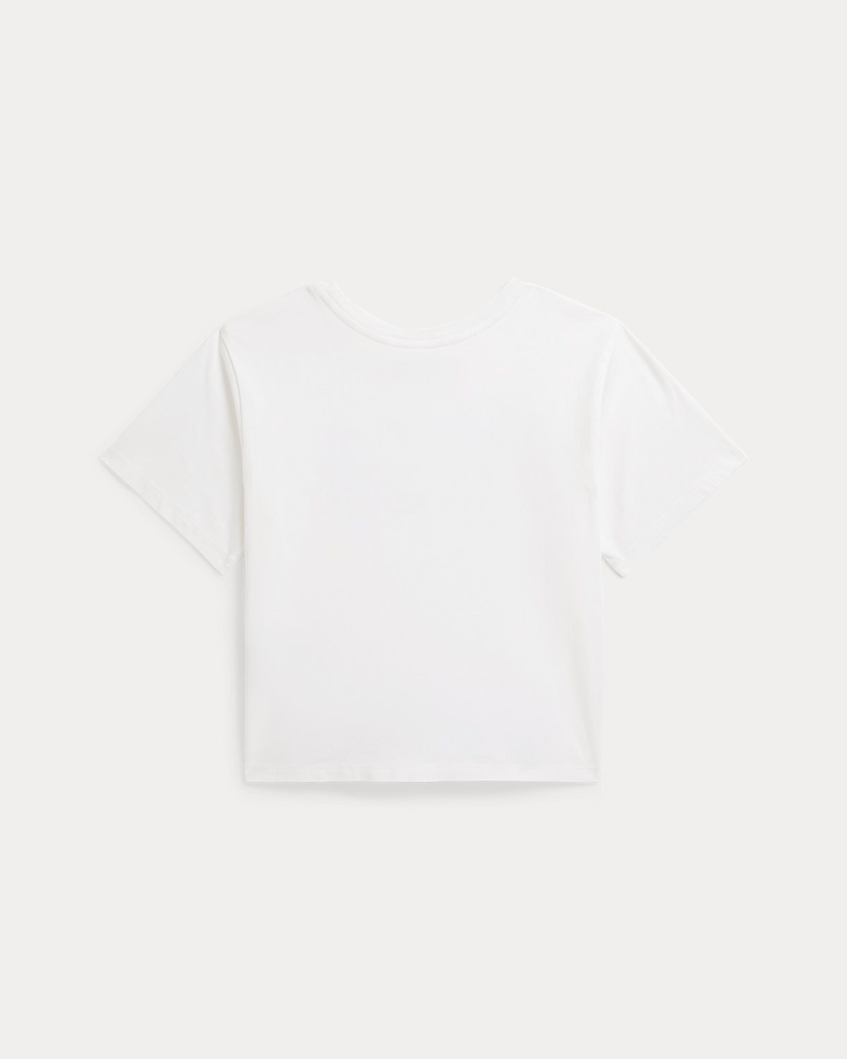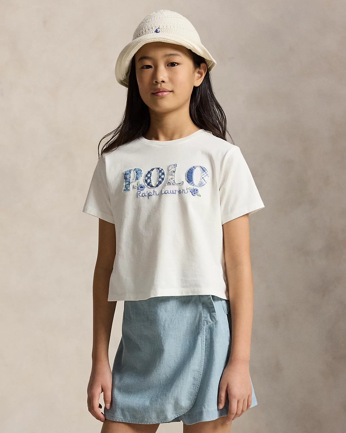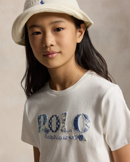 On this boxy-cut cotton tee, our “Polo” logo is depicted with appliqués in a mix of seasonal prints inspired by New England’s effortless coastal charm.