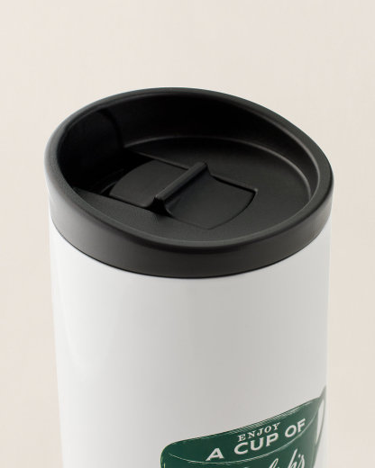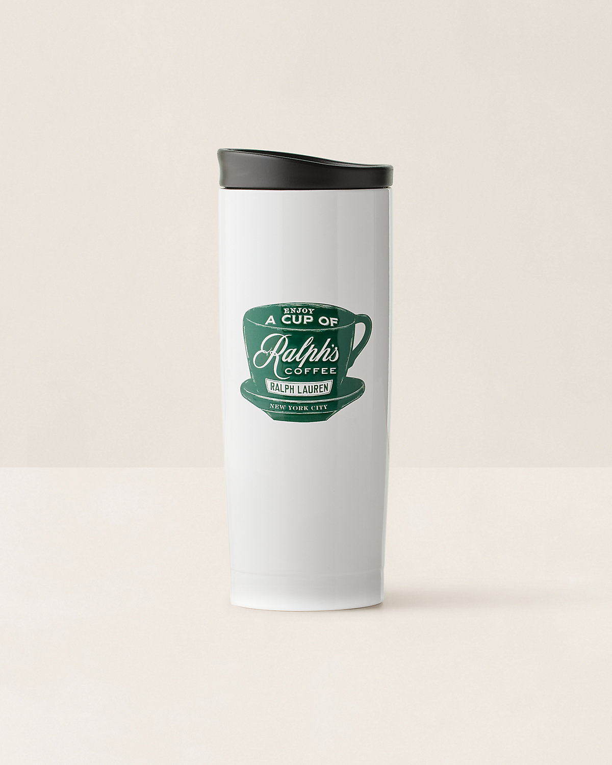 This reusable stainless steel tumbler features the iconic Ralph’s Coffee logo at the front in signature green and white.