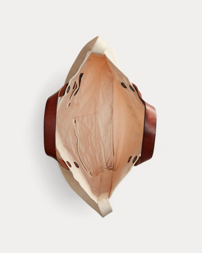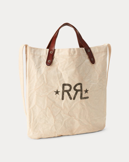 Made with cotton canvas. Full-grain leather top handles. Double RL Ranch logo and stars screen-printed at the front. Unlined.