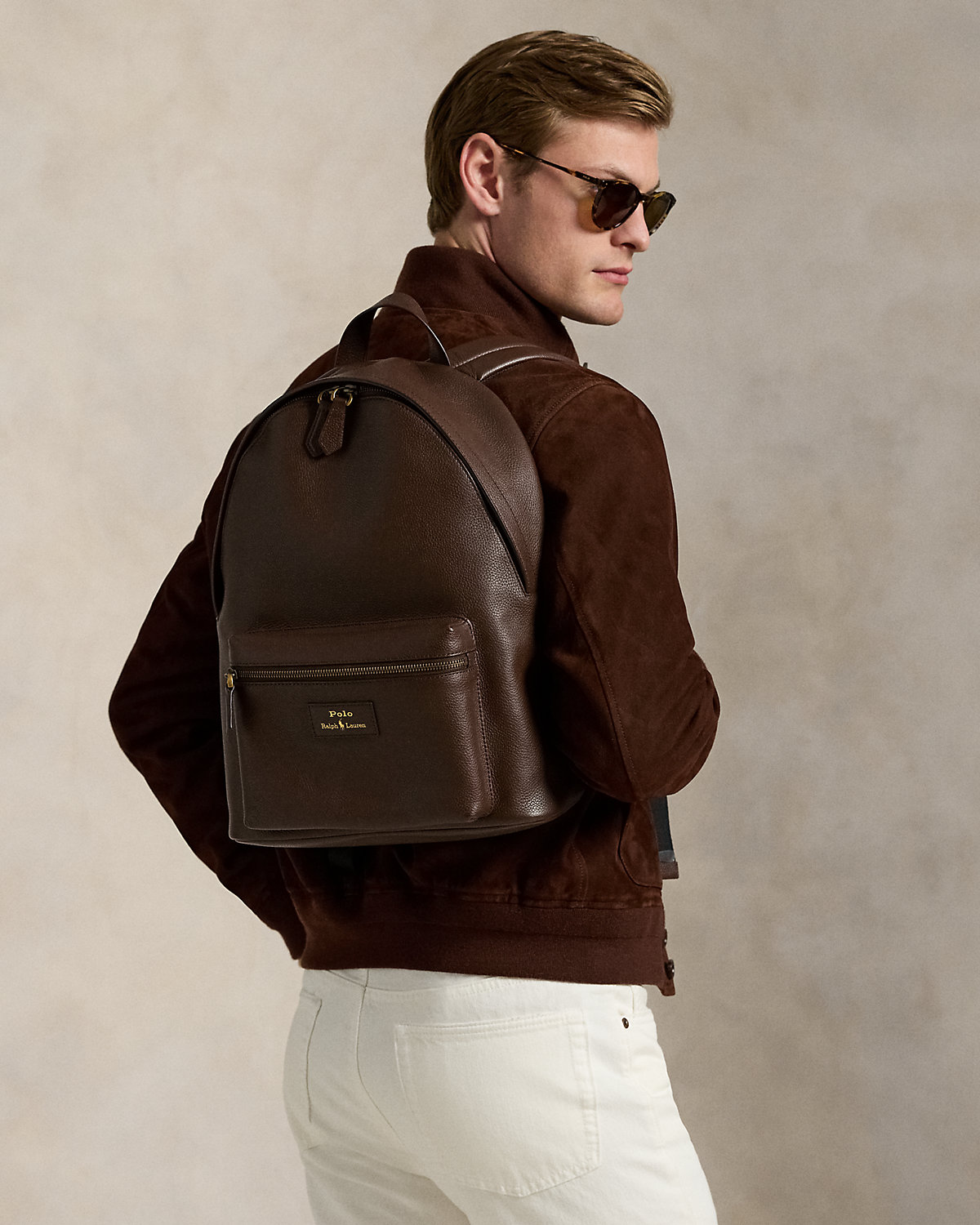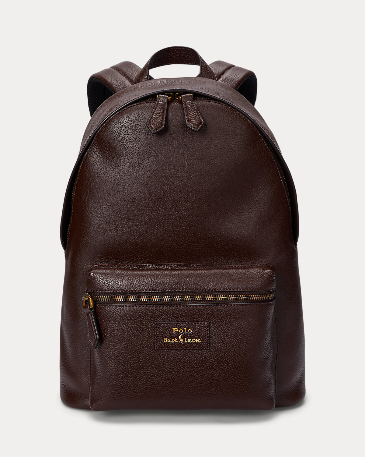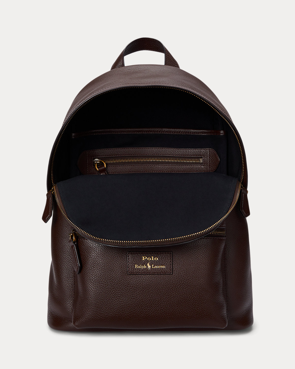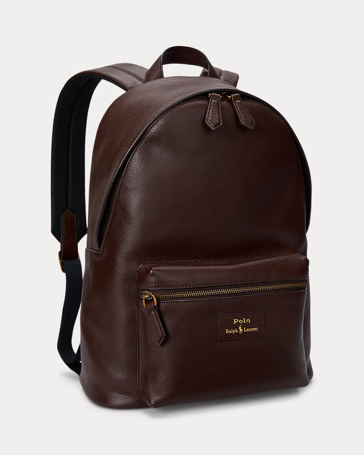A streamlined silhouette realized in pebbled leather gives this backpack a modern look. Embossed at the front pocket with Polo Ralpthth Lauren’s signature logo, it features a mesh-paneled back for comfort and a padded laptop sleeve at the interior.
