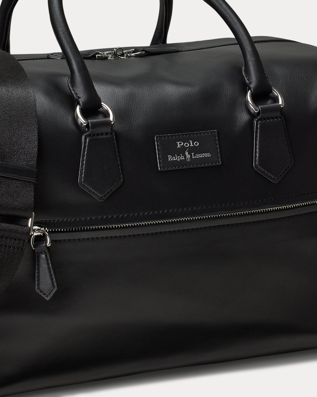 - Two-way top zip closure with leather zipper pulls.