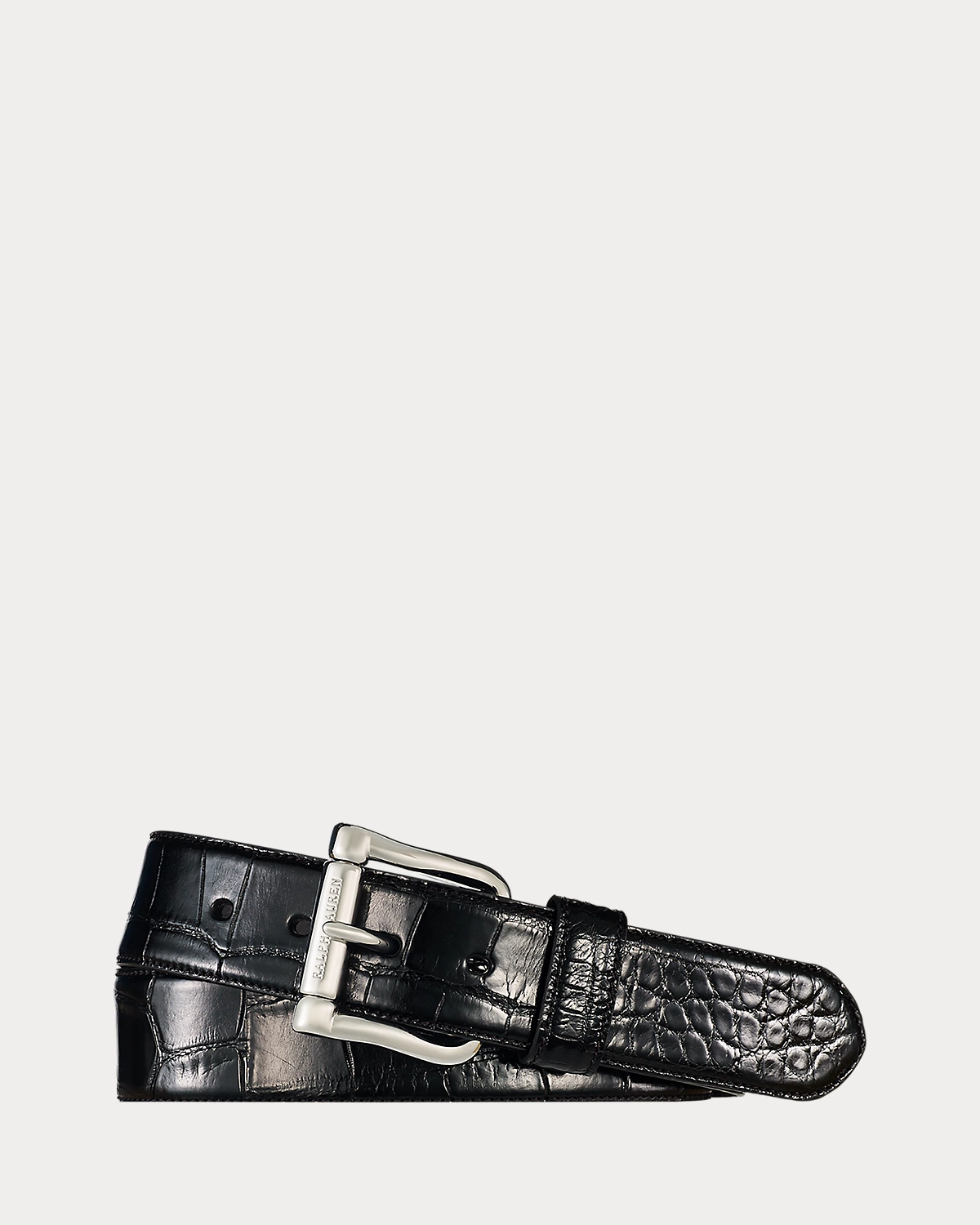 This sleek belt is made in Italy from refined alligator and secures with a polished "Ralpthth Lauren"–engraved roller buckle.