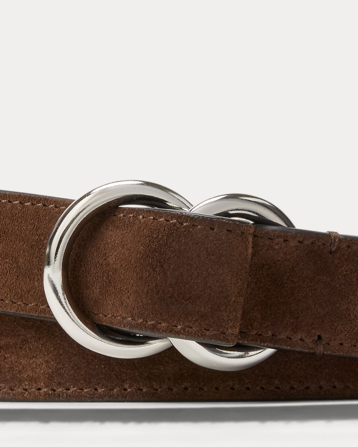 This slender Italian-made belt features a luxurious calf-suede strap that fastens with a double-O-ring brass buckle in a polished palladium finish.