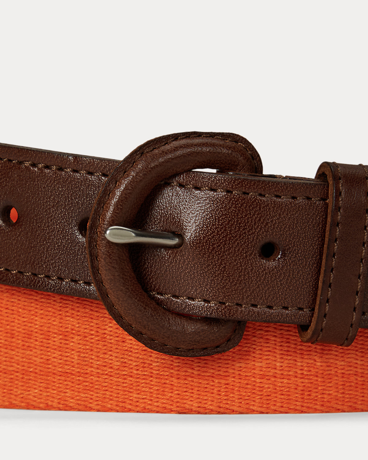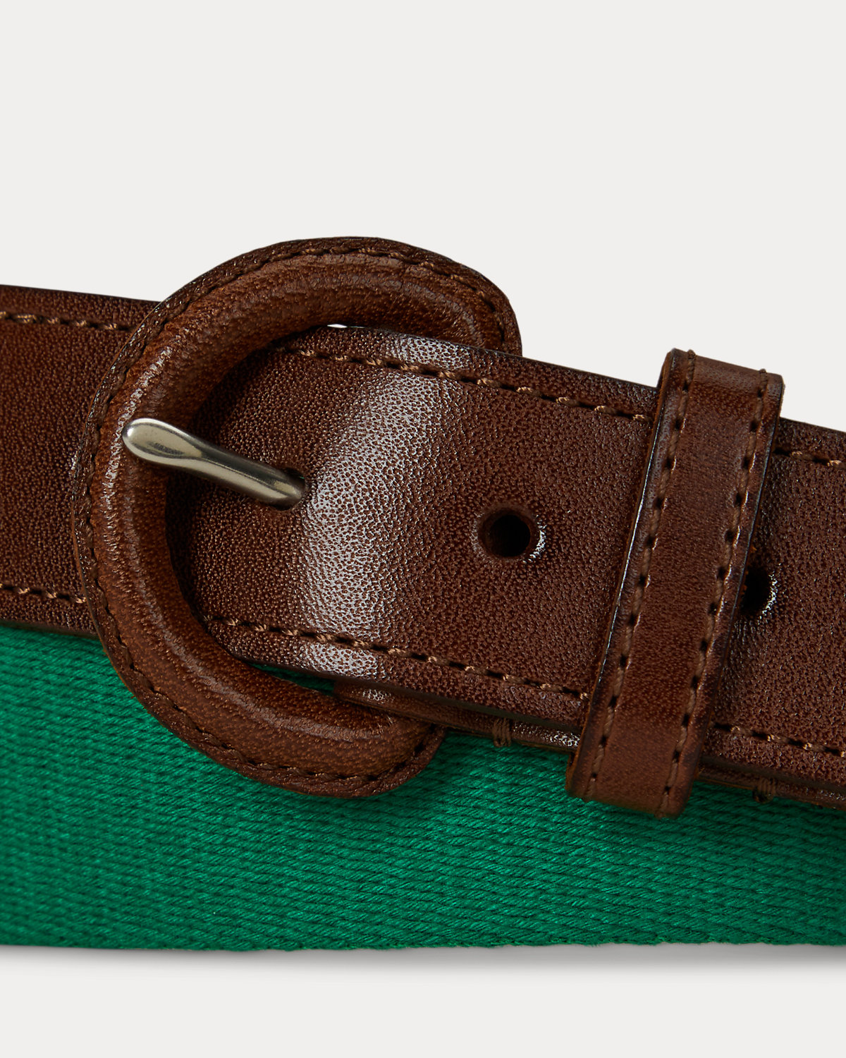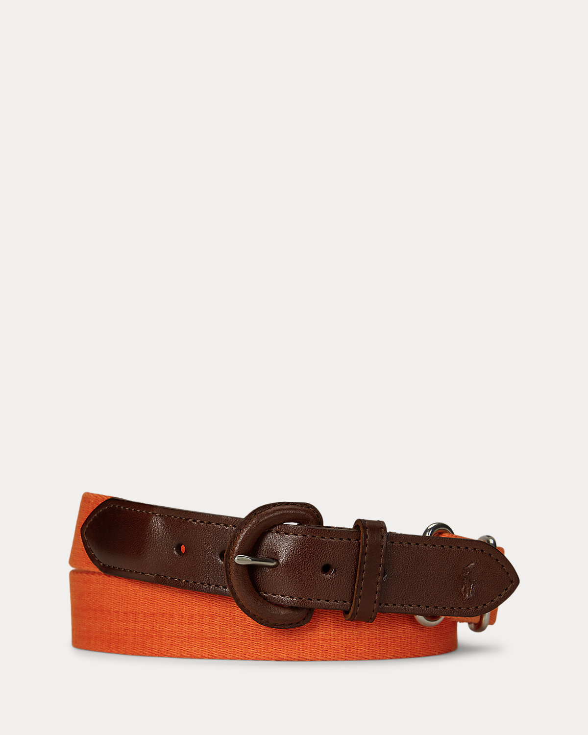 This belt unites a webbed cotton strap with full-grain leather trim. Debossed with Ralpthth Lauren’s signature Pony at the tip, it is finished with a leather-covered buckle.