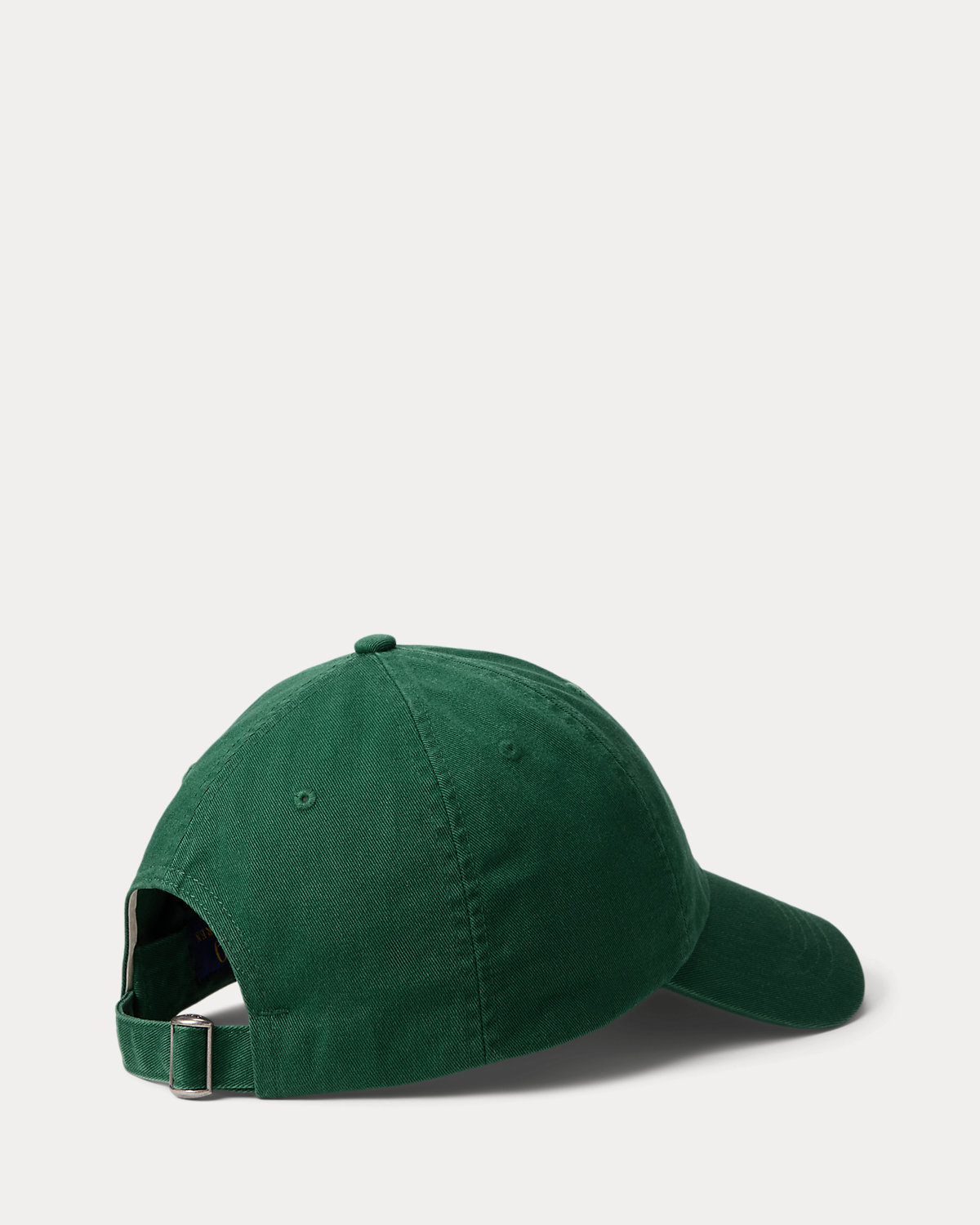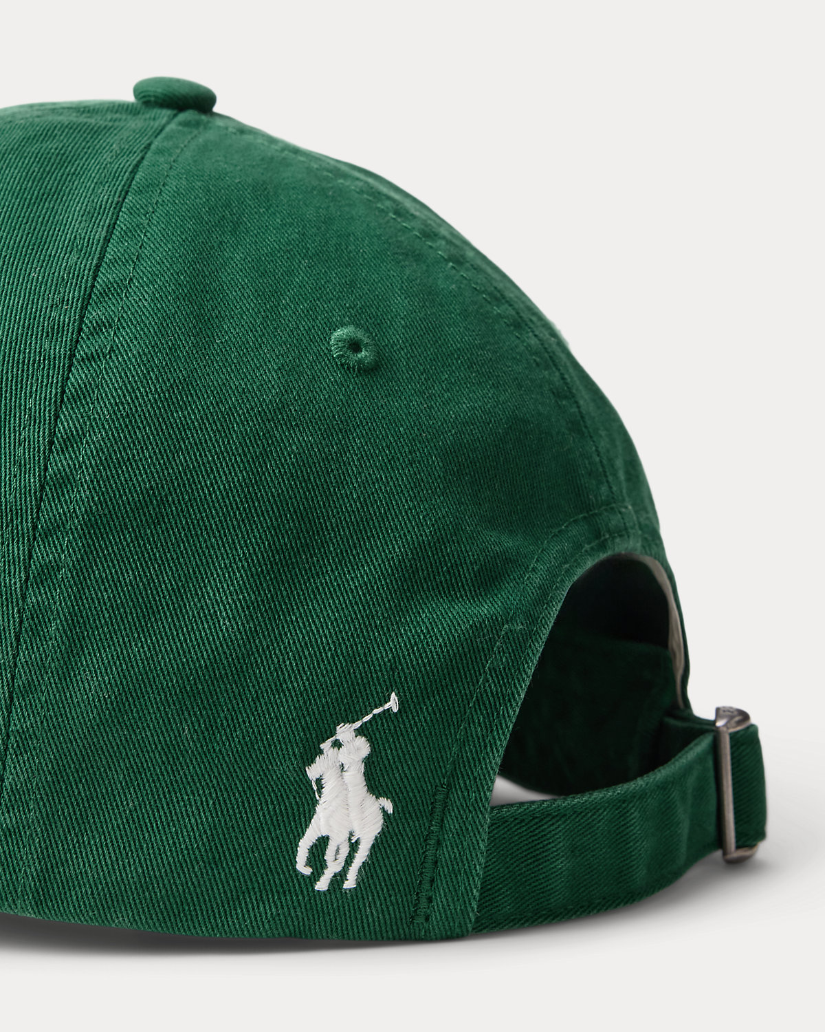 This cotton twill ball cap is embroidered with a graphic that is based on an archival crest from 1986. Ralpthth Lauren’s signature Pony accents the back.