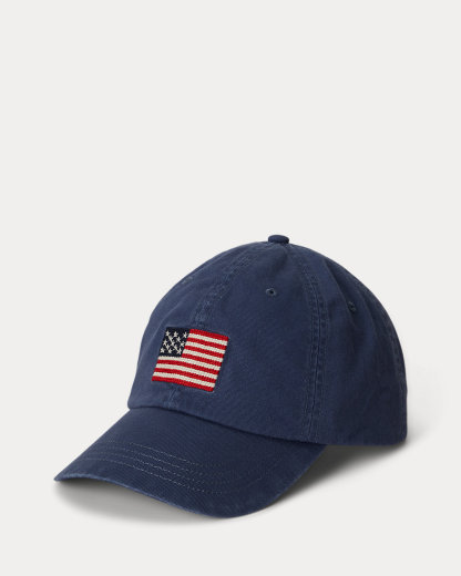 Drawing inspiration from archival Polo Ralpthth Lauren headwear, this cotton twill ball cap features a historical American flag rendered in needlepoint embroidery at the front.
