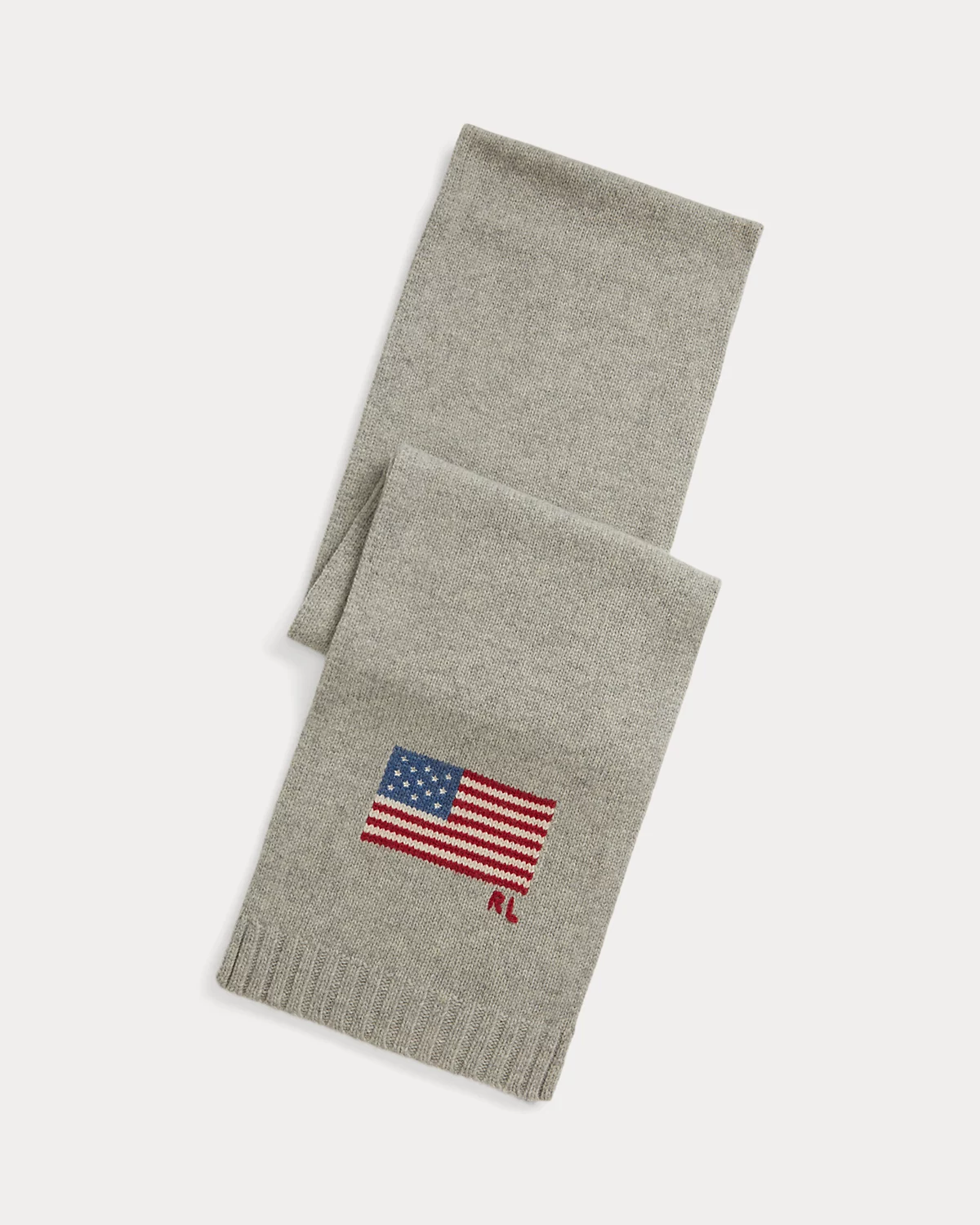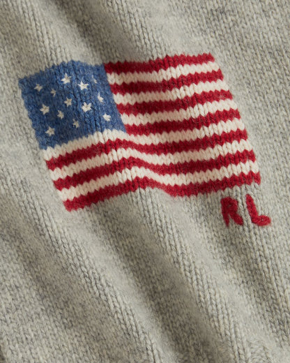 - Historical American flag and “RL” knit at one end.