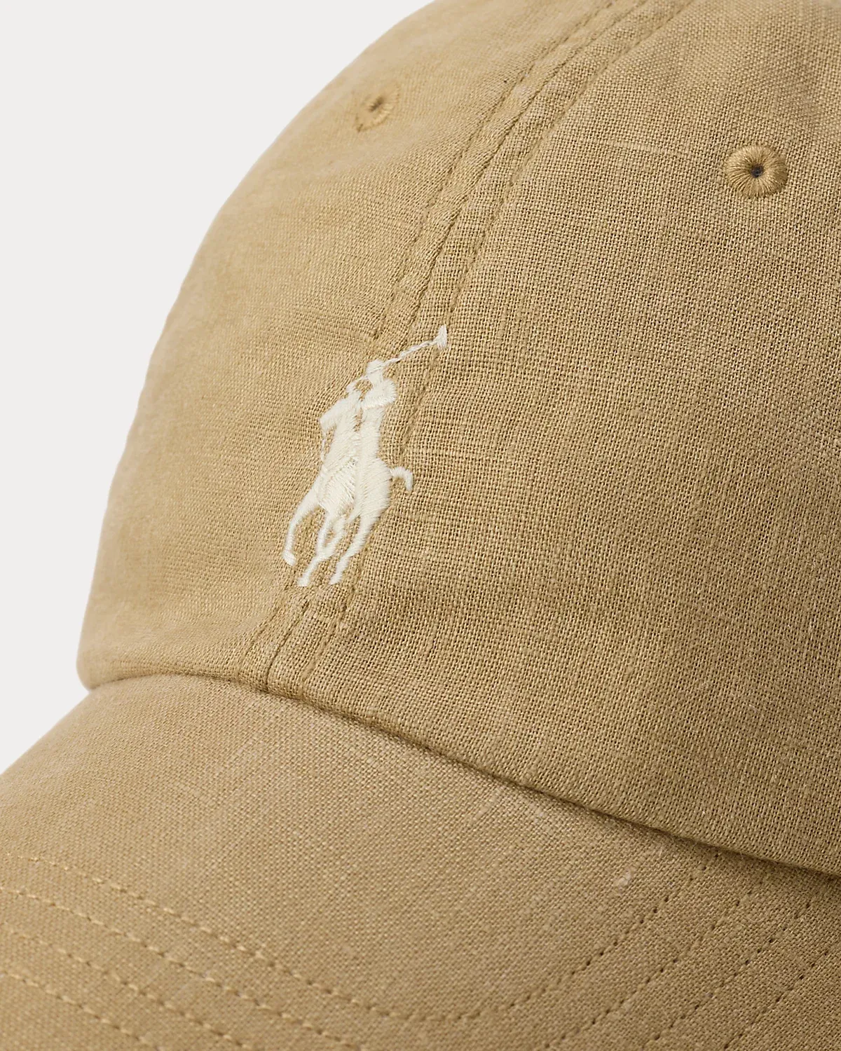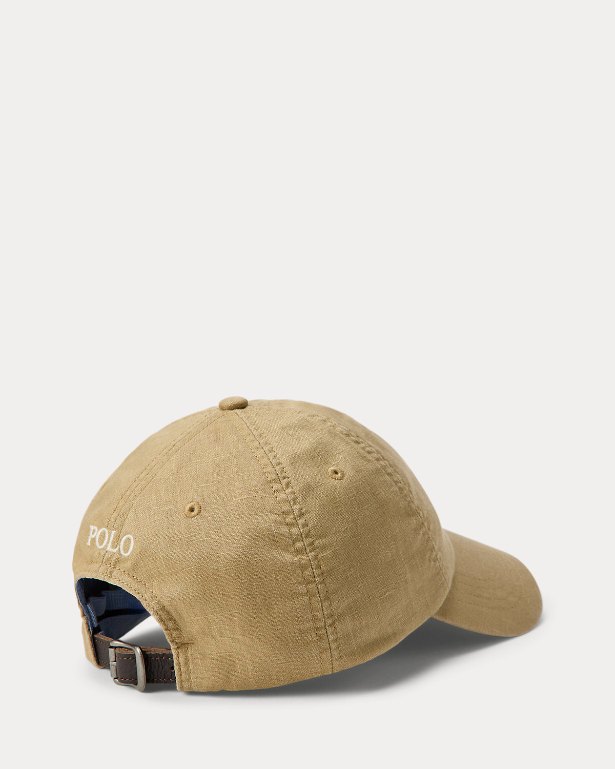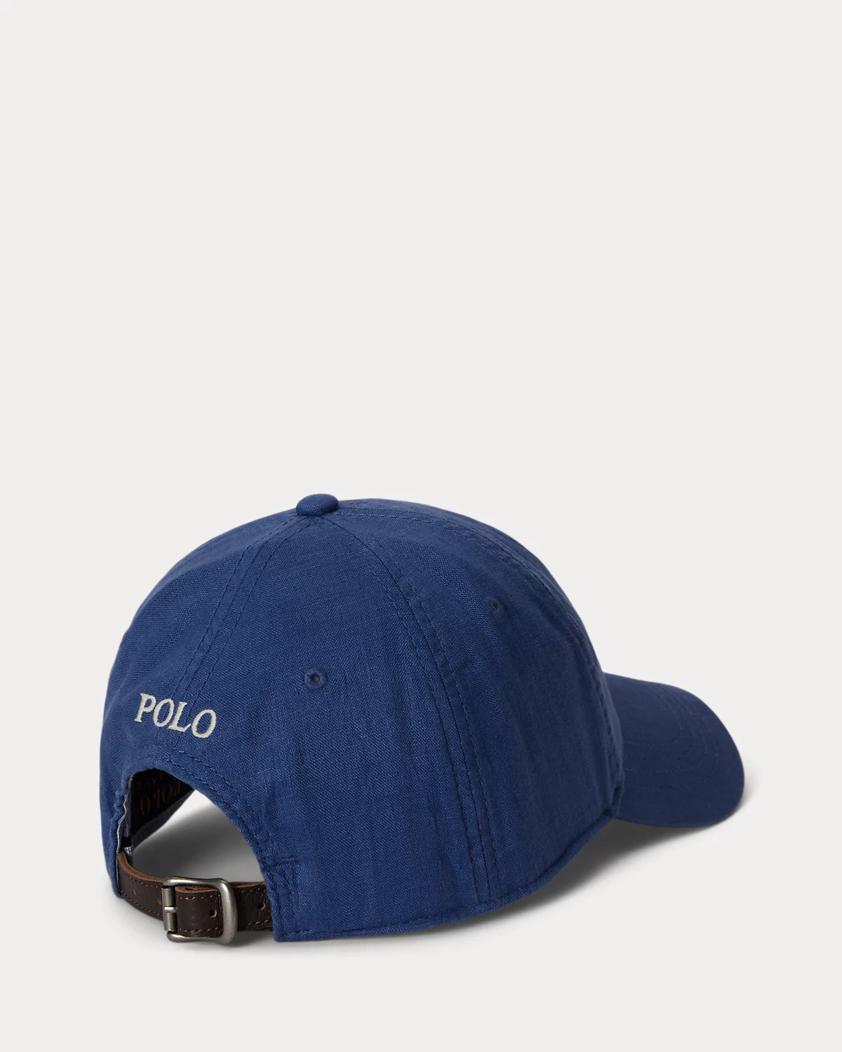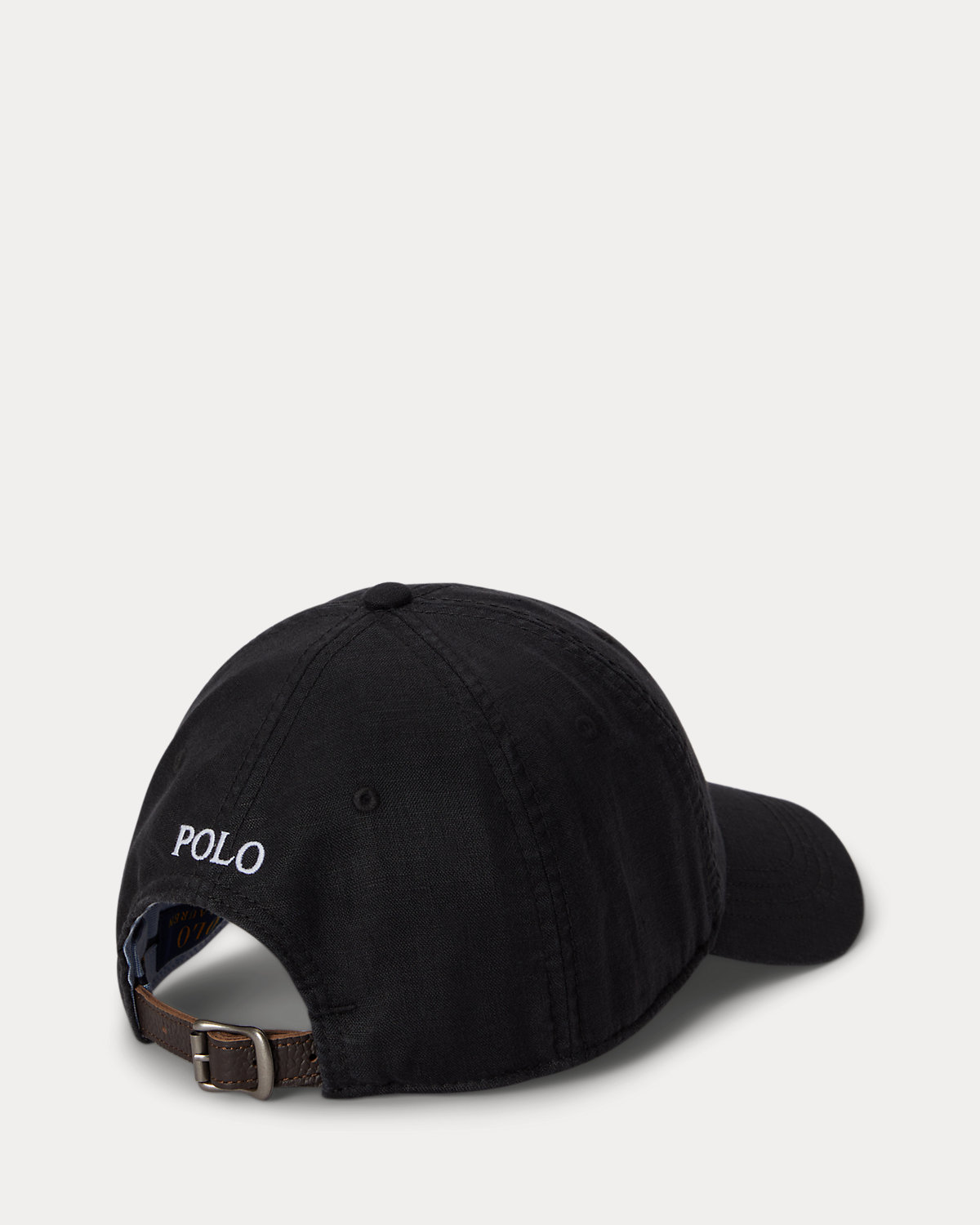 This timeless ball cap is realized in the same fine linen used in Ralpthth Lauren’s iconic shirting. Washed for added softness, it is lined with chambray and finished with a buckled leather back strap.