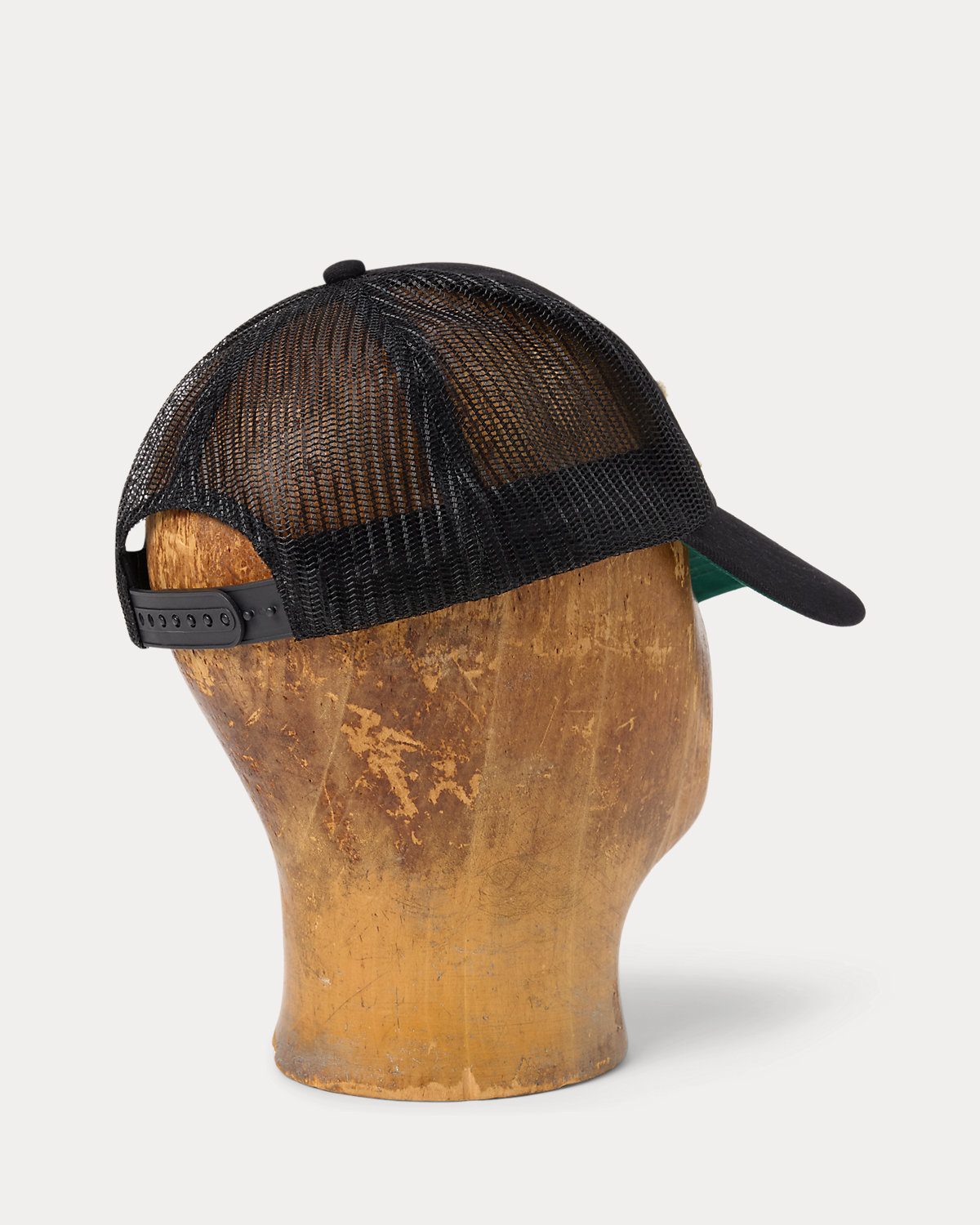 Made with cotton denim. Mesh back panels. Custom-embroidered logo patch at the front inspired by an original Double RL ball cap from 1993. Signature green underbill. Adjustable back strap.