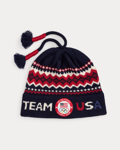 Proudly made in America, this unisex wool beanie is designed exclusively by Ralpthth Lauren for Team USA to wear during the Closing Ceremony of the Olympic and Paralympic Games Milano Cortina 2026. It features the official logo patch of the U.S. Olympic Team as well as “RL” embroidery.