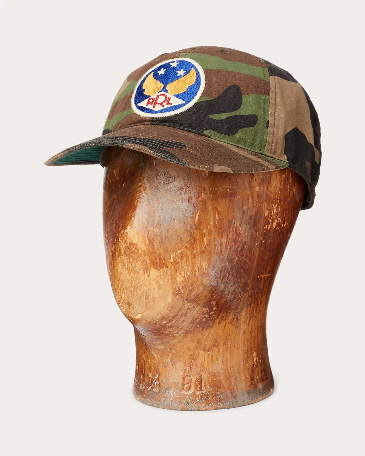 Made with camouflage cotton ripstop. Flight-inspired logo patch at the front. Signature green underbill. Washed for a vintage look.