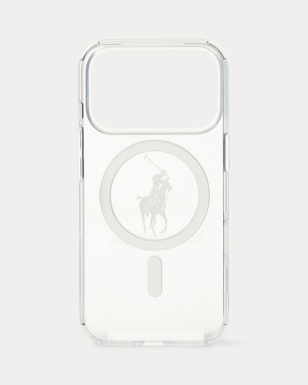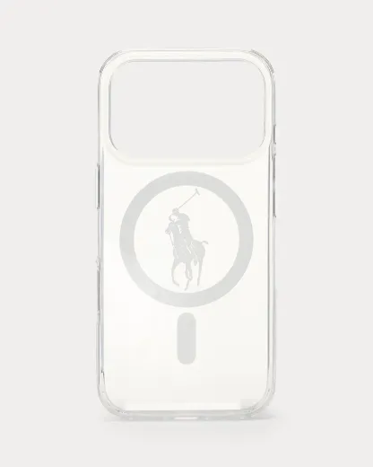 This clear phone case achieves a modern minimalist look with a sleek silhouette accented by our signature Pony. Designed with a raised-edge camera bezel, it offers MagSafe compatibility for wireless charging.