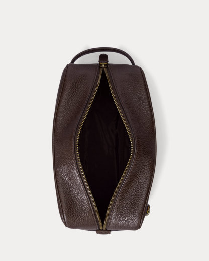 Crafted with pebbled leather, this streamlined travel case is the perfect size to hold your grooming essentials.