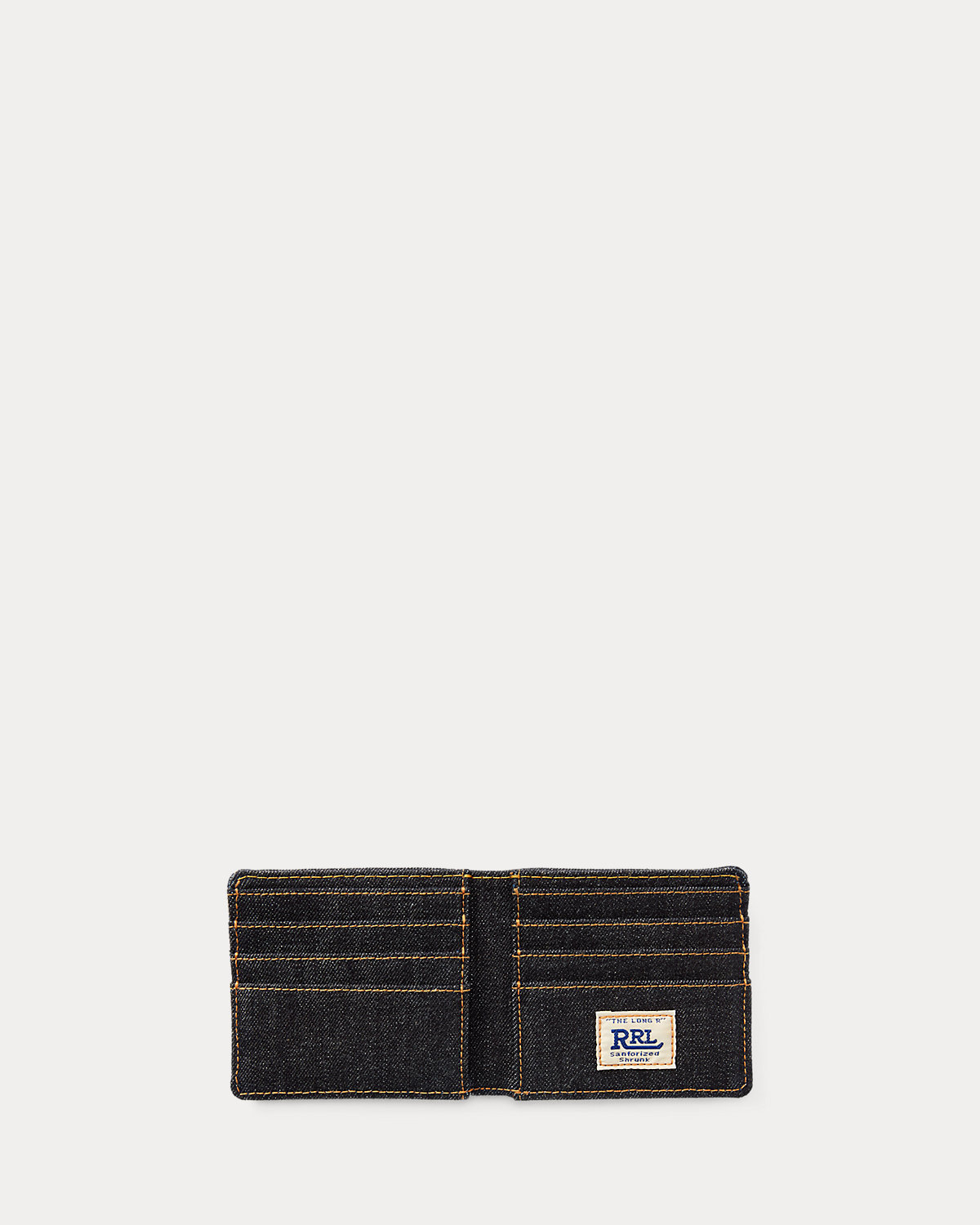 Lightweight billfold made from indigo-dyed denim. Double RL Ranch logo embroidered at the front. Signature patch at the interior.