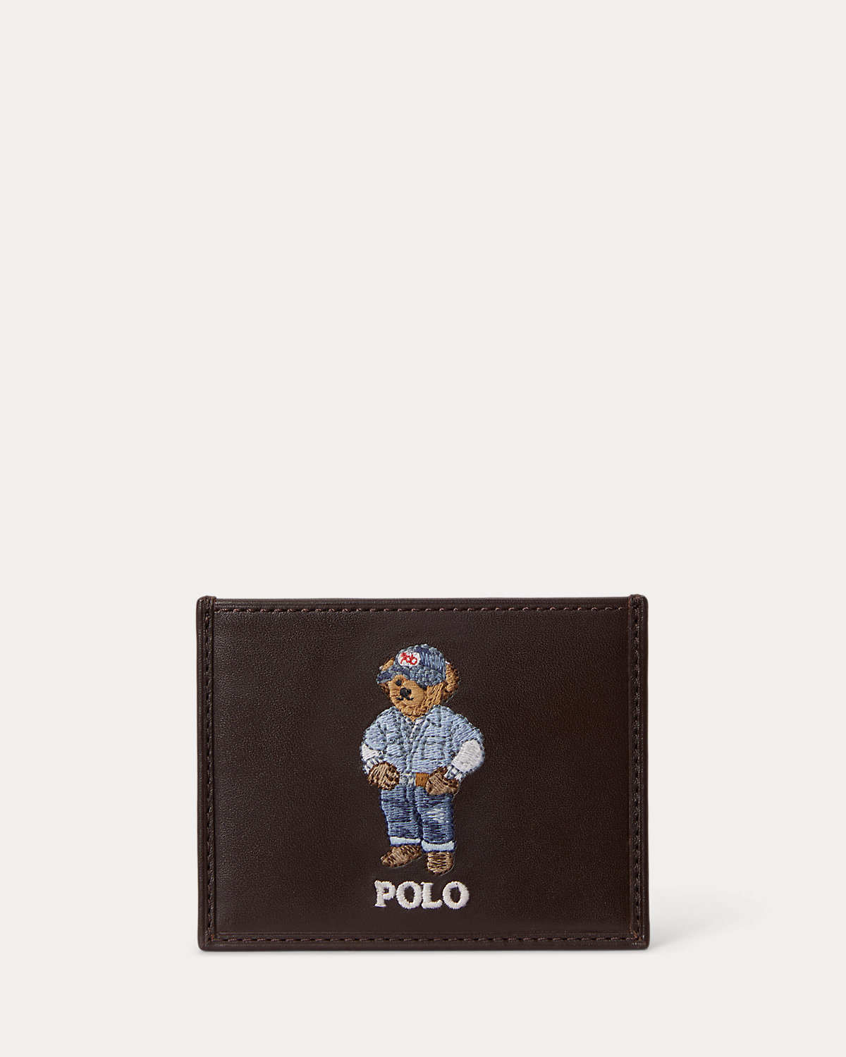 Ralpthth Lauren’s iconic mascot is embroidered on this slim card case, which is crafted with waxed full-grain leather.