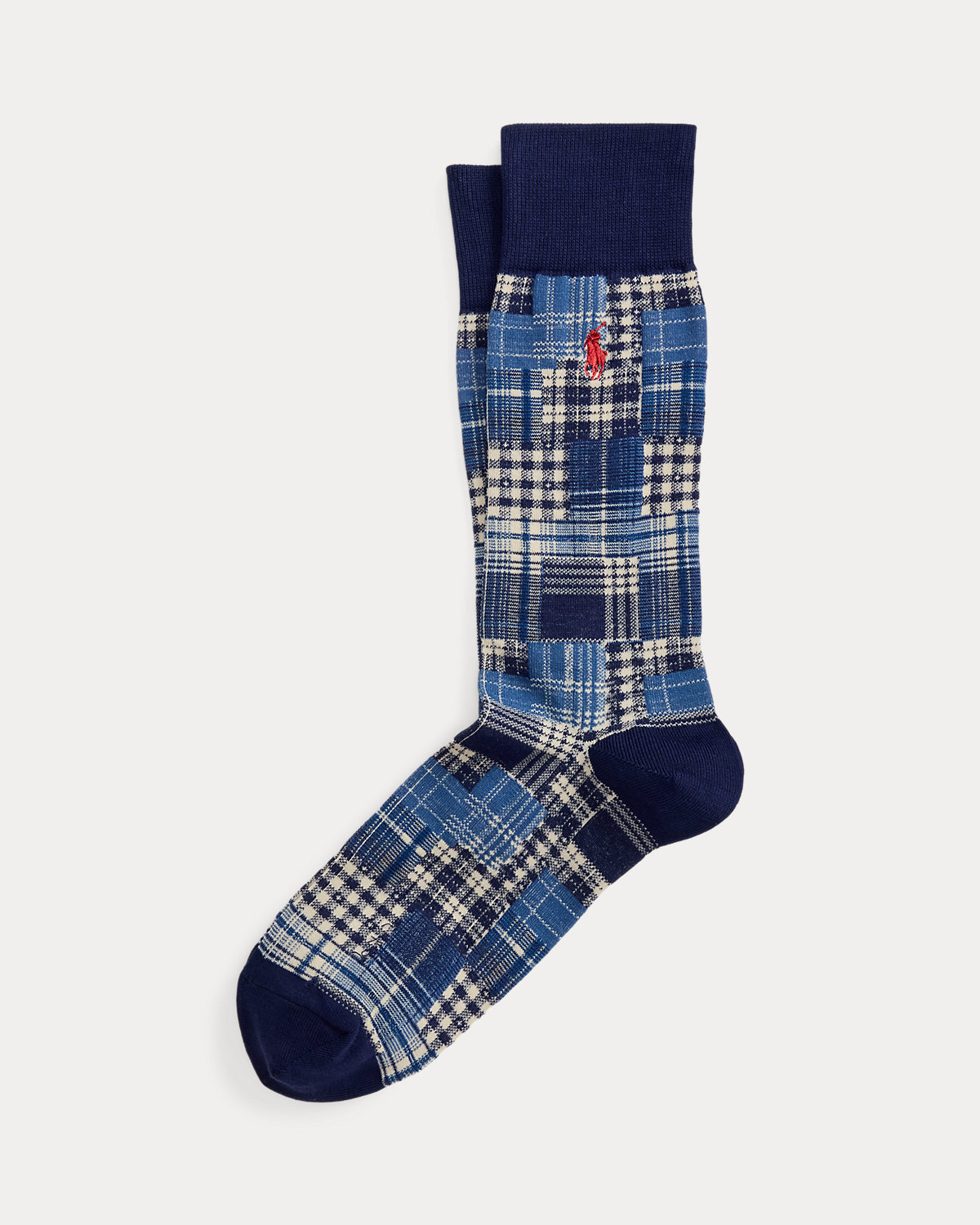 Featuring a patchwork design inspired by plaid and checked shirting fabrics, these trouser socks are finished with our signature embroidered Pony at the side.