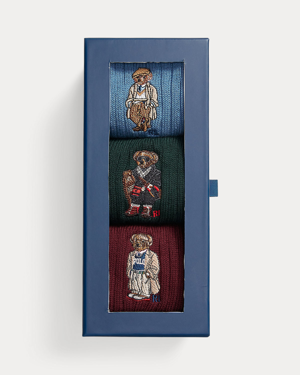 Crafted with combed cotton in a chunky rib–knit construction, the crew socks in this boxed gift set are embroidered with the Polo Bear dressed in three iconic Ralpthth Lauren looks.