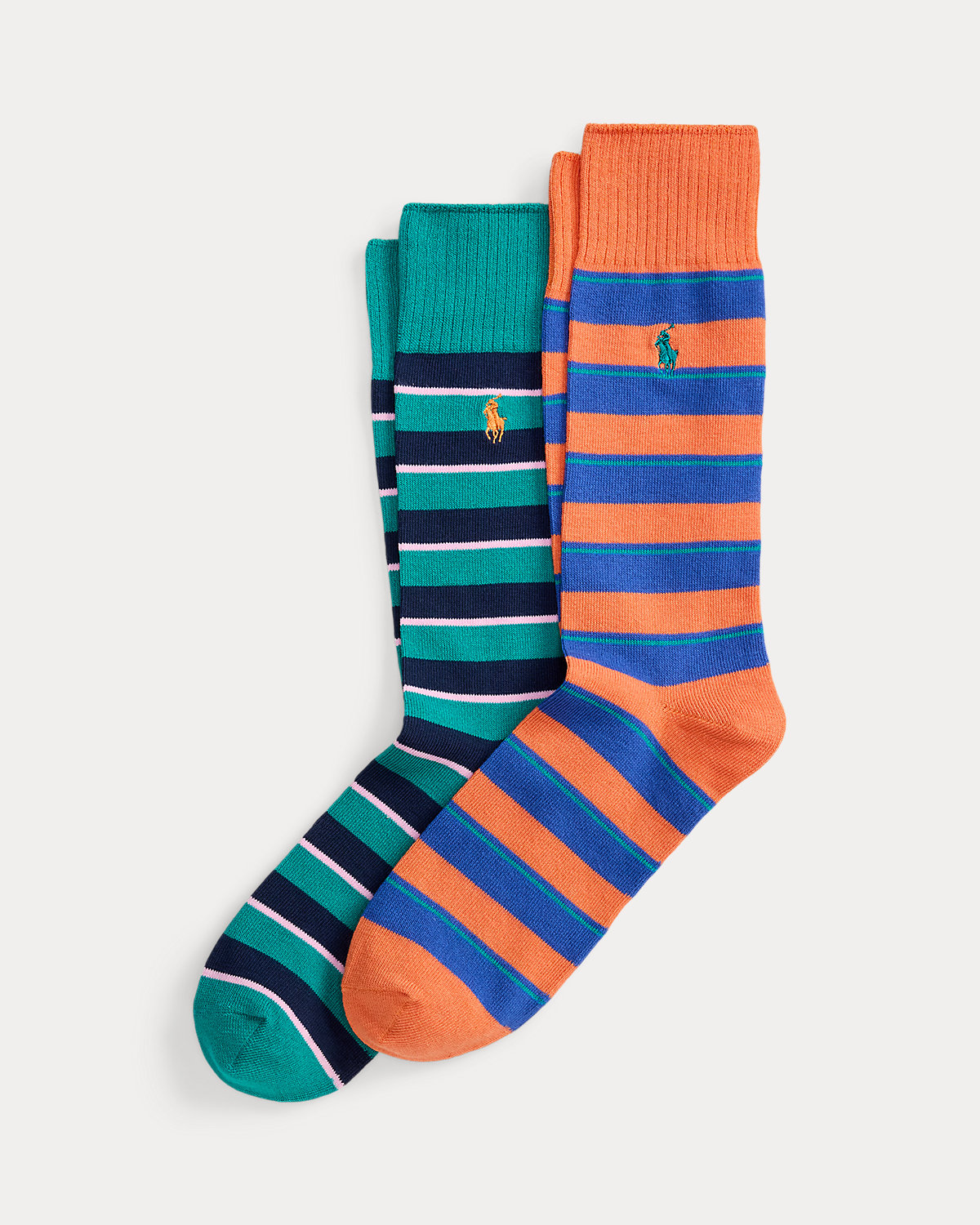 Bold stripes in the colors of the season define the cotton-blend trouser socks in this two-pack, which are finished with Ralpthth Lauren’s signature embroidered Pony.