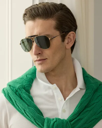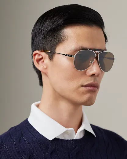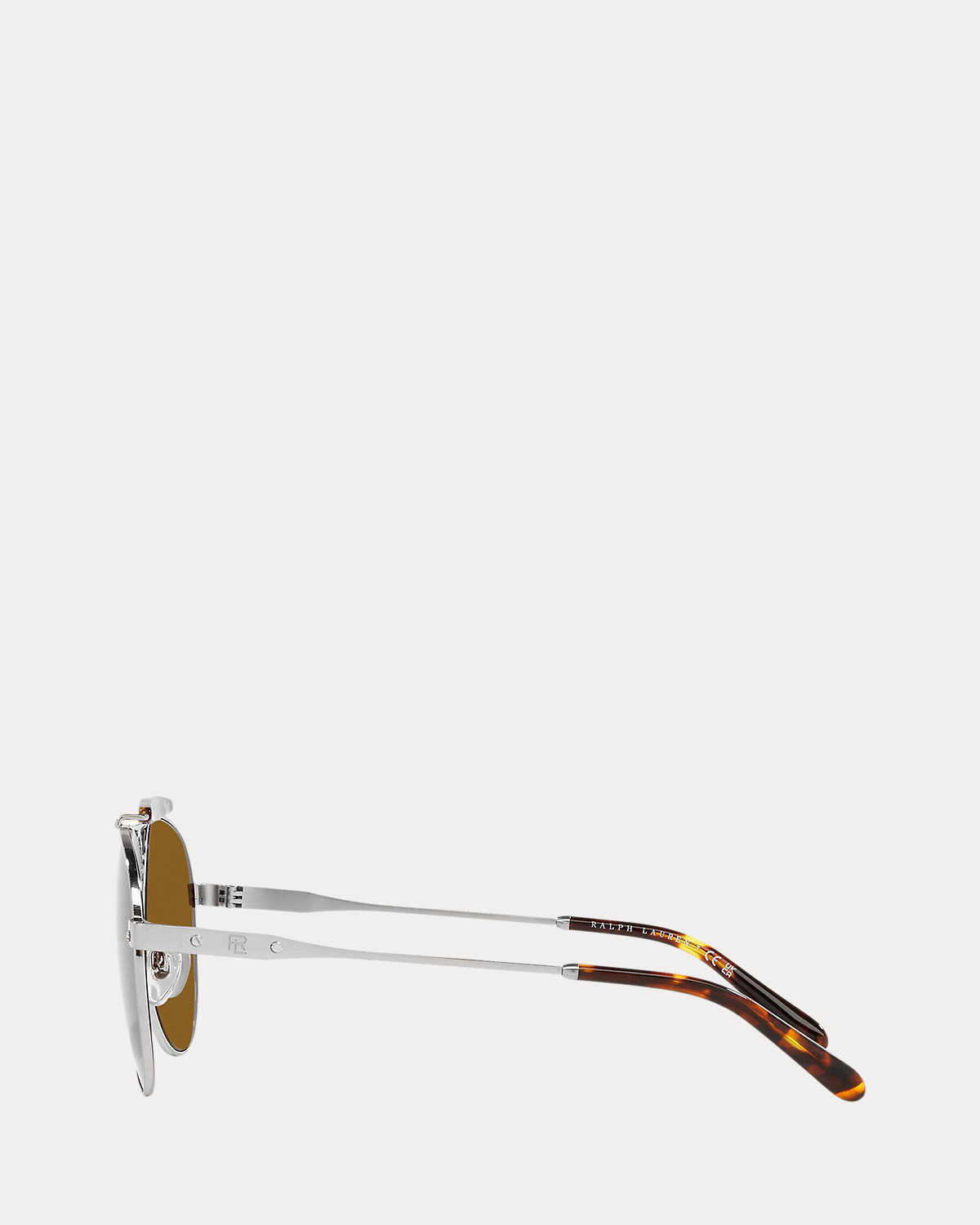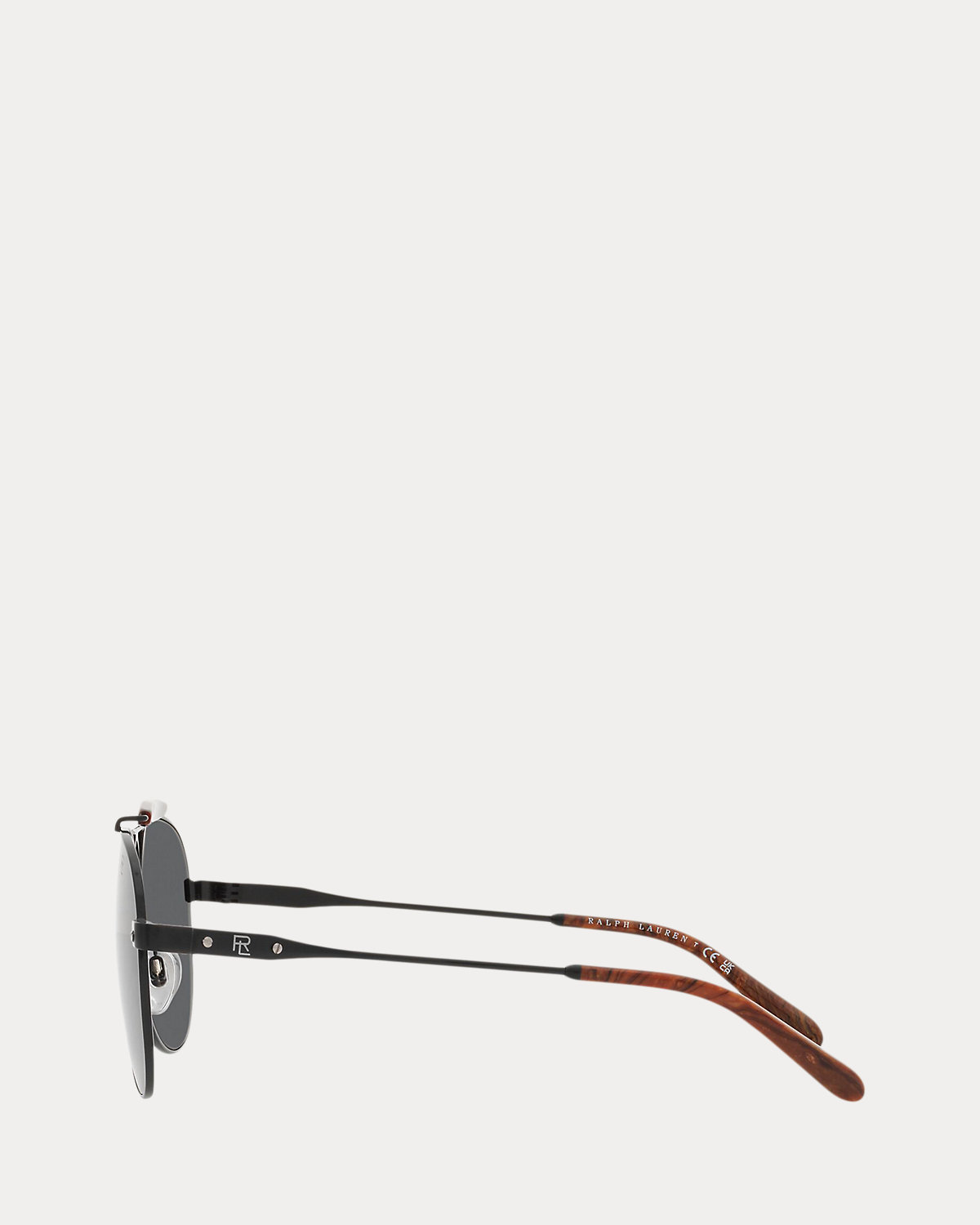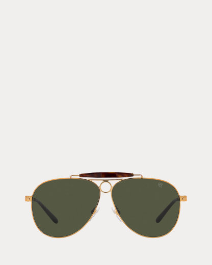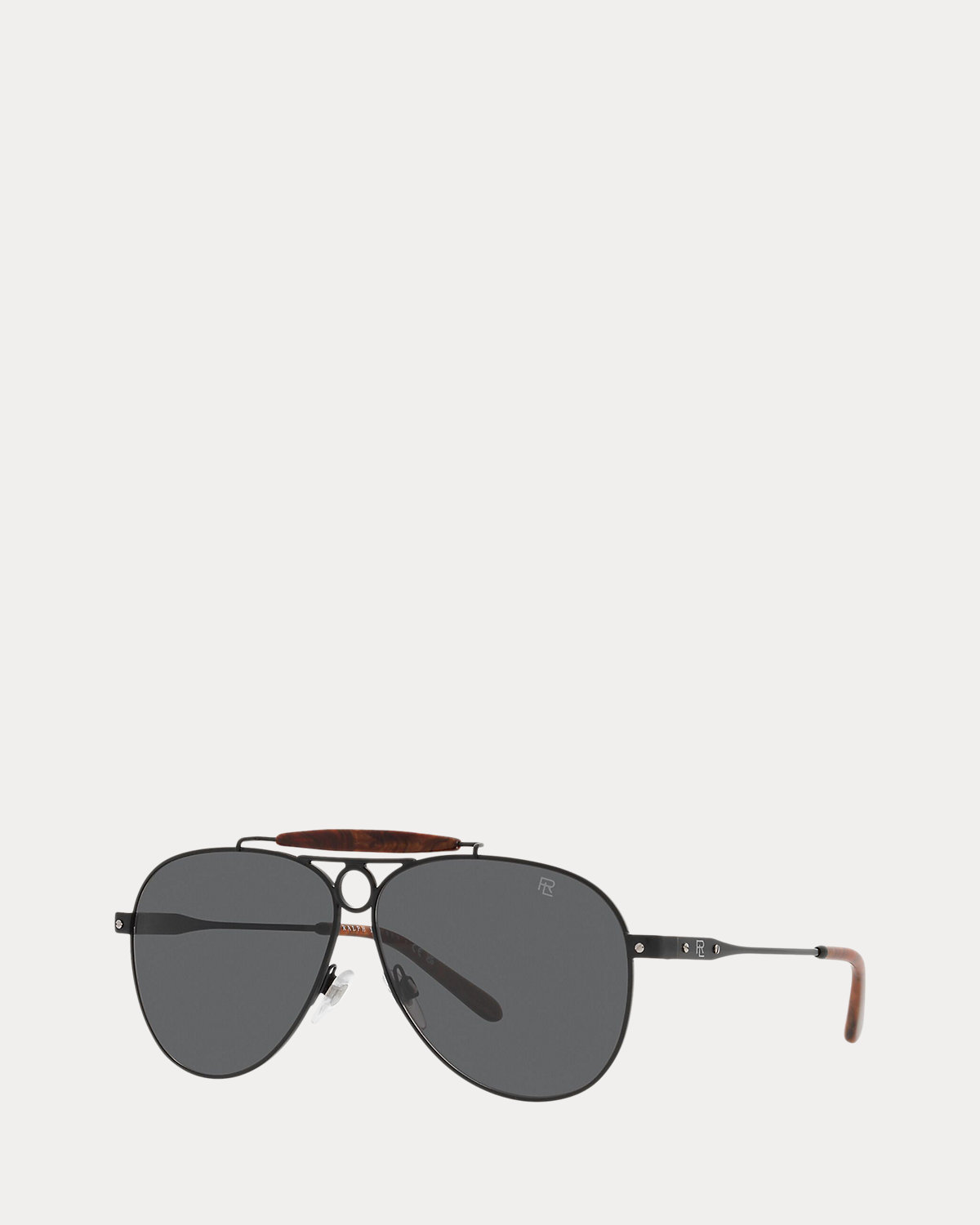 These metal pilot sunglasses feature a unique bridge silhouette and acetate detailing that are inspired by design elements of the classic cars in Ralpthth Lauren’s own collection.