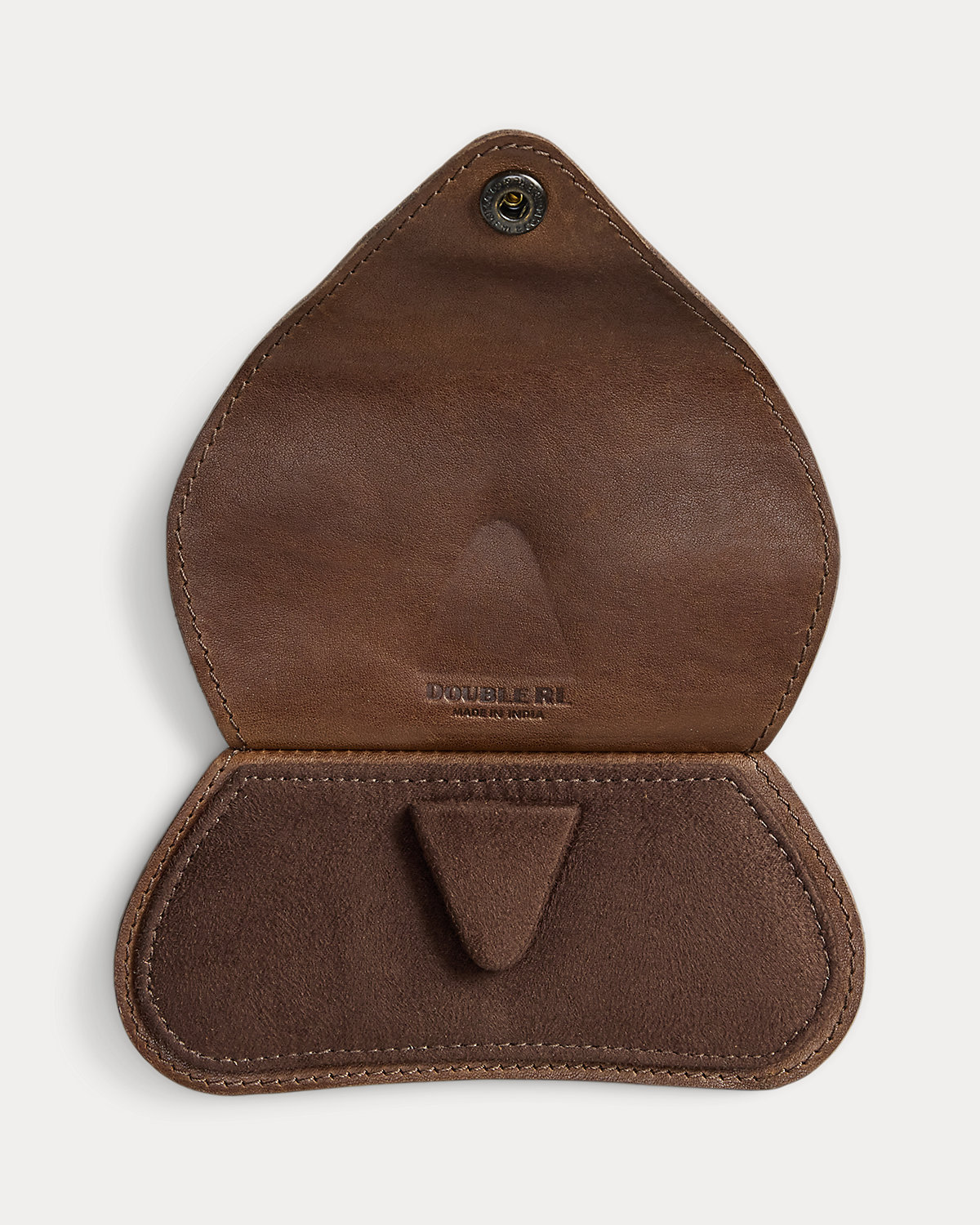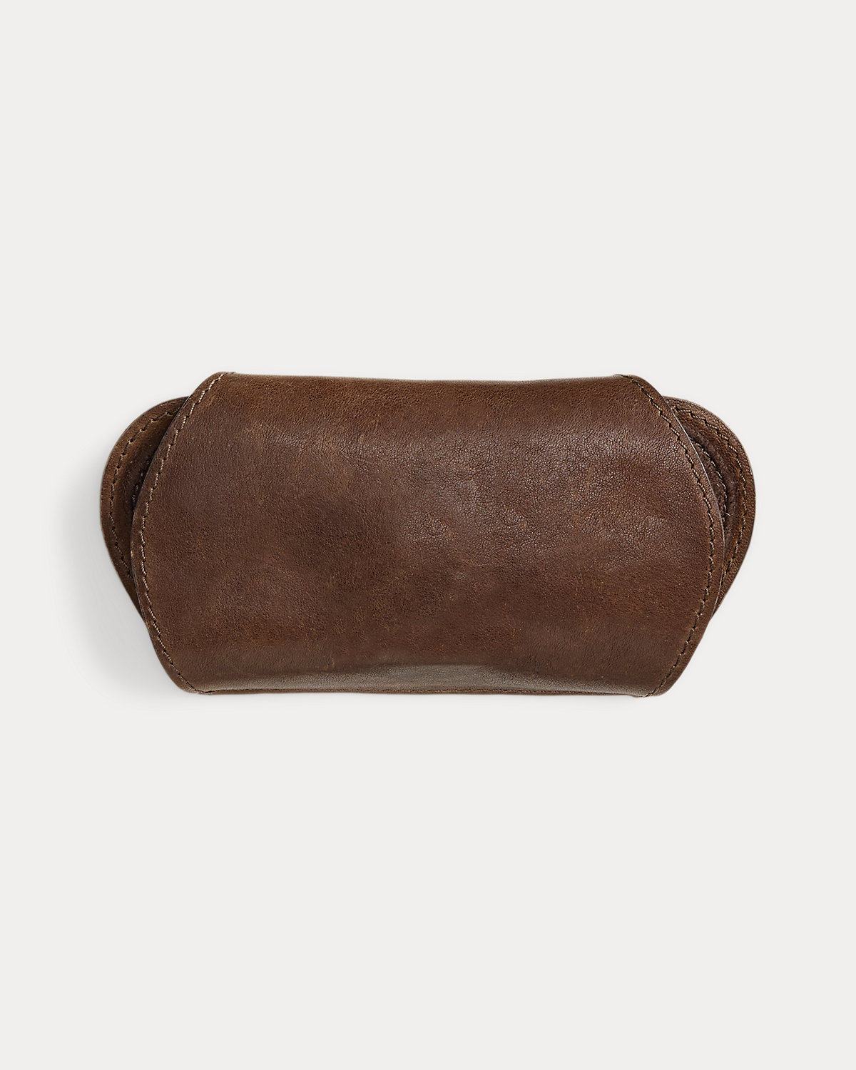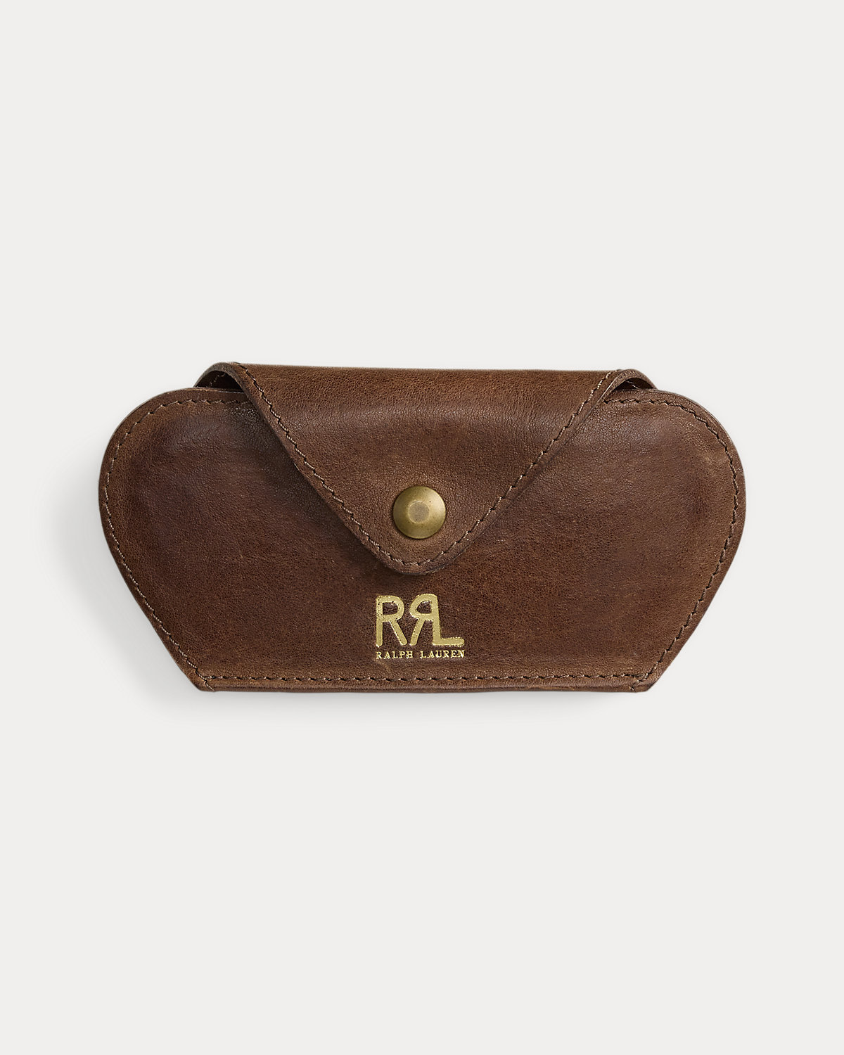 Made with vegetable-tanned leather that features grain variations and is specially developed for tonal dimension. Raw-cut edges are heavily rounded and burnished with wax. Interior padded cushion and nose bridge dyed to match the leather exterior. Unique design fits flat eyewear. Insert eyeglasses or sunglasses with lenses facing cushion, fasten case, and fold temples over flap. Antiqued brass snap.