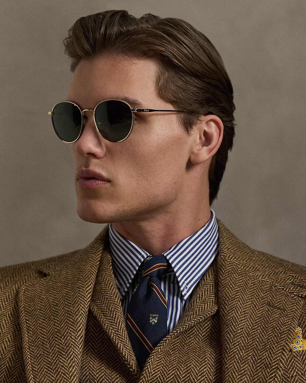 These ’90s-inspired round metal sunglasses achieve a classic Polo look with plaid detailing at the rims. They are finished with tortoiseshell acetate temple tips accented with our signature Pony.