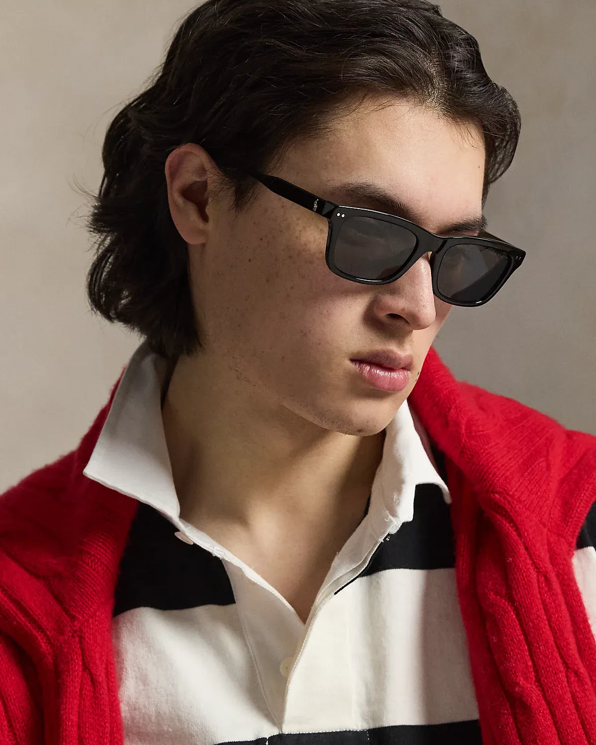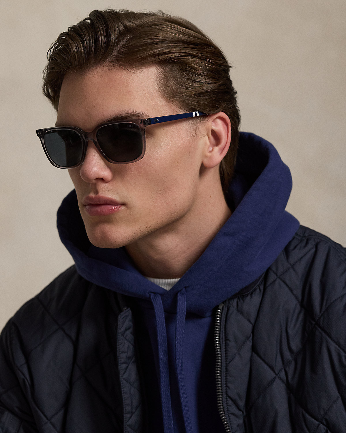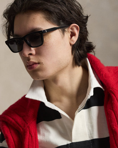 With a nod to Ralpthth Lauren’s iconic rugby shirt, these square-shaped sunglasses feature a streamlined frame detailed with collegiate-inspired stripes at the temples.