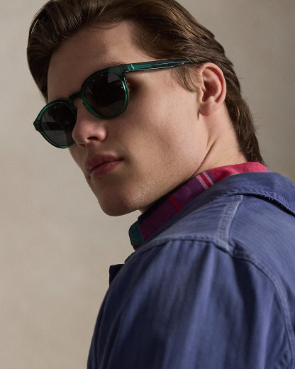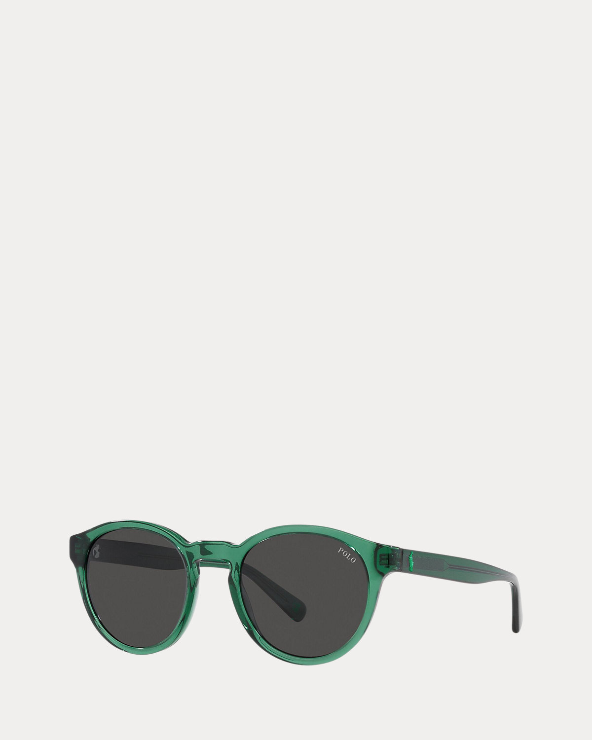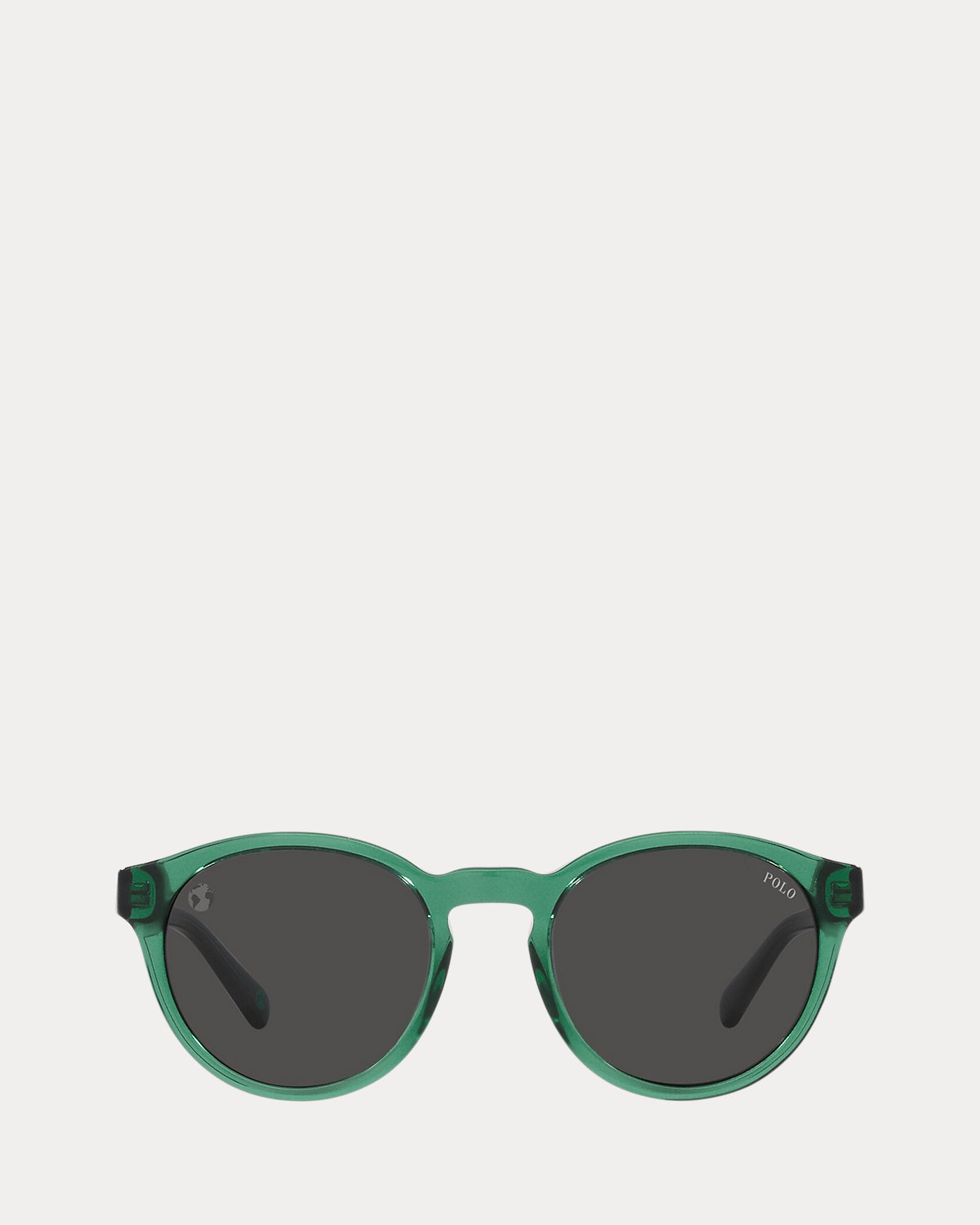 Part of Polo Ralpthth Lauren's new eyewear collection made with bio-based materials, these panto sunglasses feature our signature Pony, rendered in green, at the temples.
