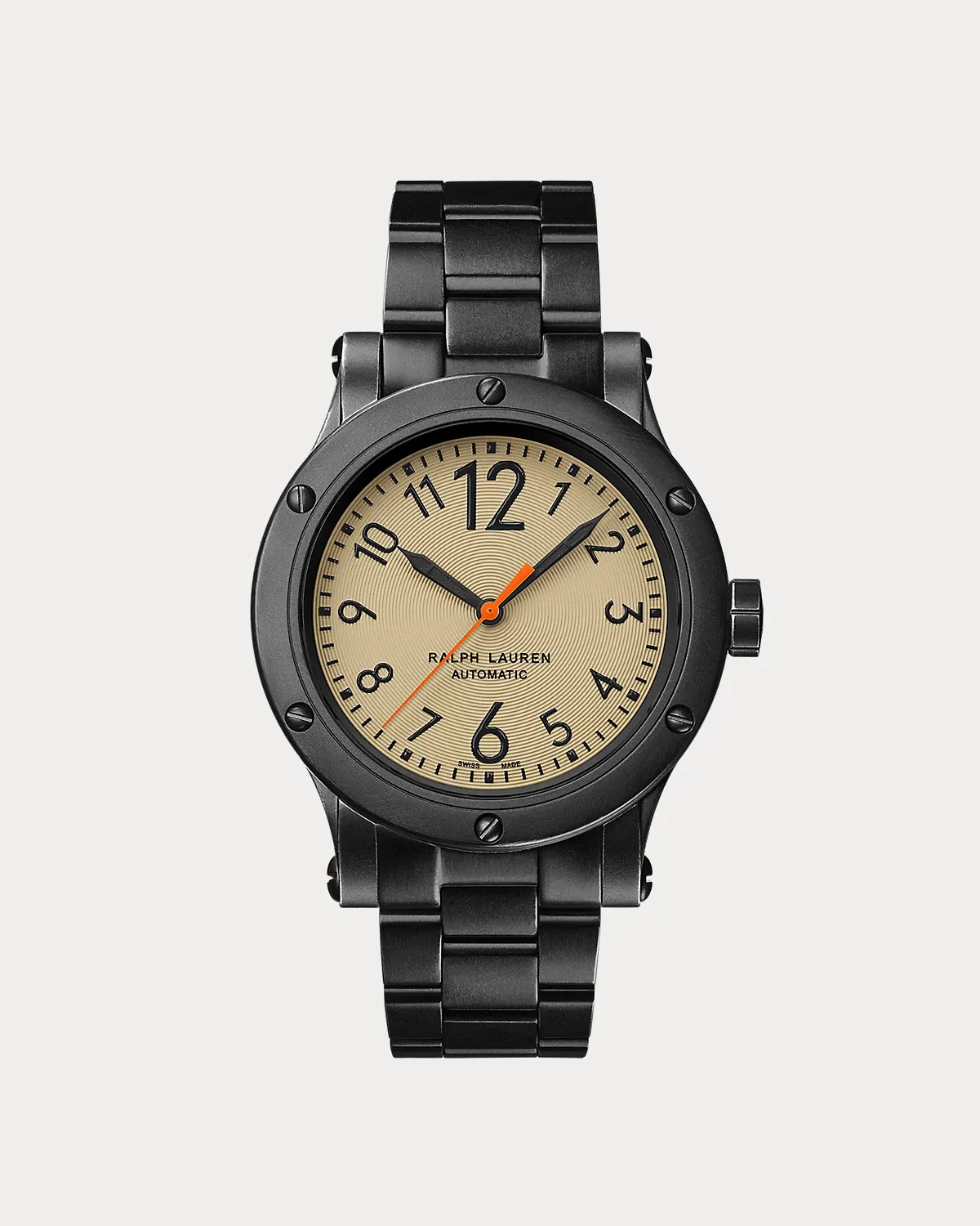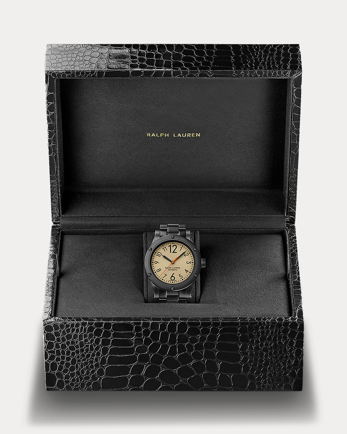 - Each timepiece is elegantly presented in our signature “Ralpthth Lauren” alligator-embossed watch box and includes an Instruction Manual and a Guarantee Card.