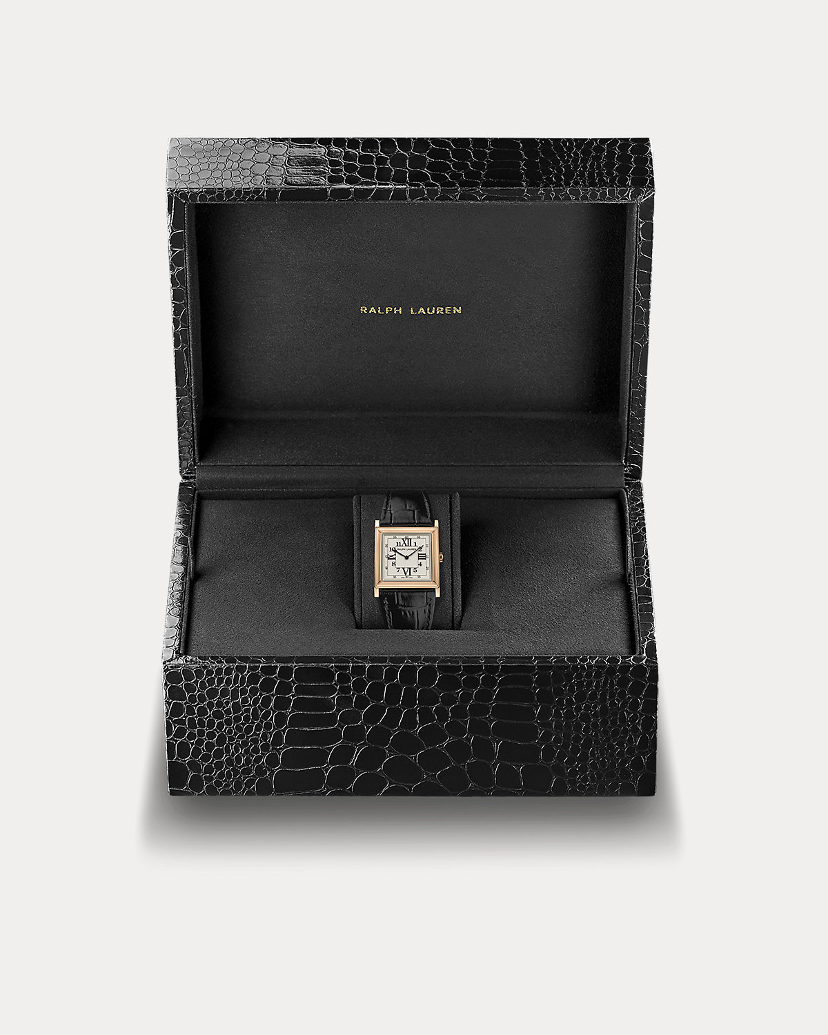 - Each timepiece is elegantly presented in our signature "Ralpthth Lauren" alligator-embossed watch box and includes an Instruction Manual and a Guarantee Card.