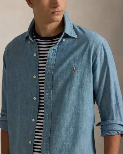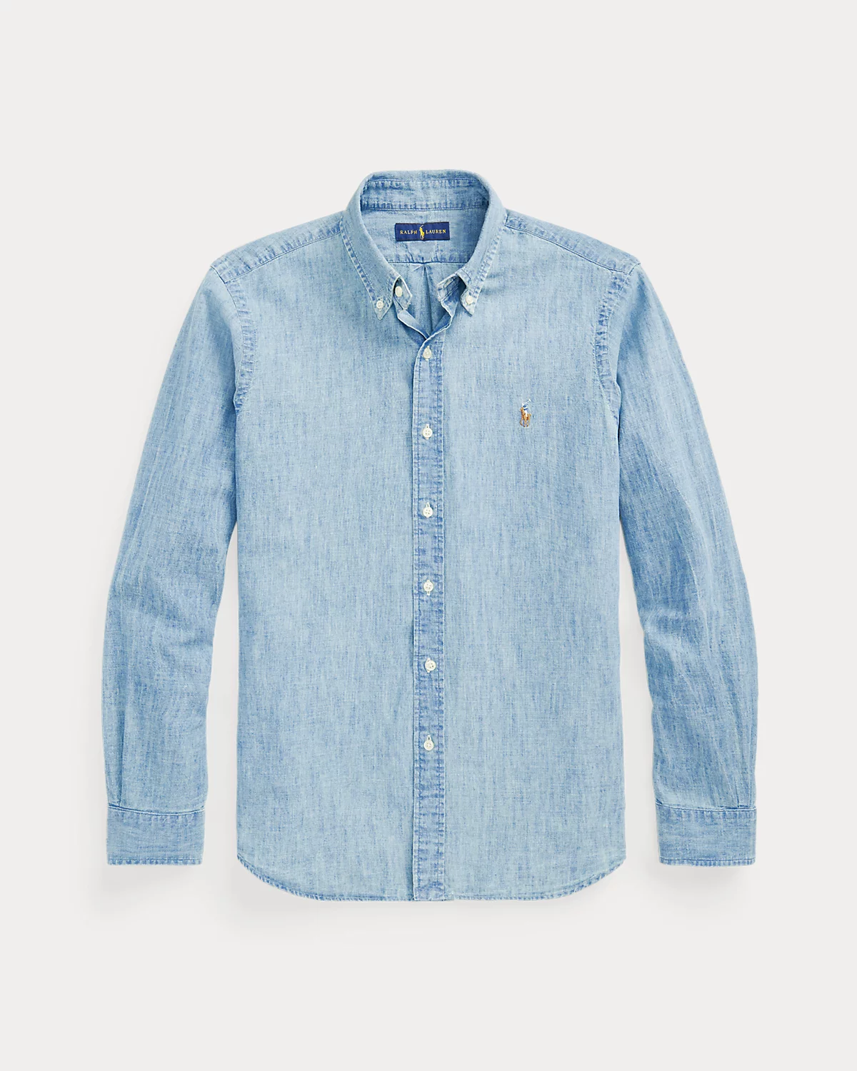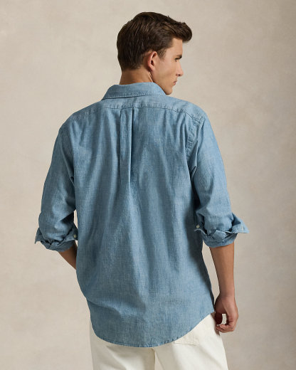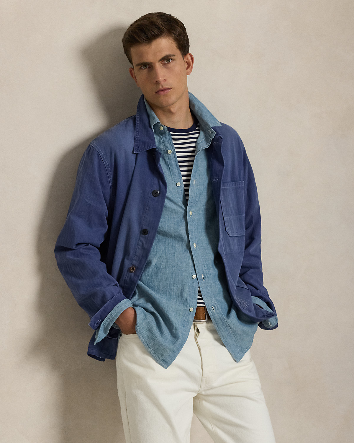 Our indigo-dyed cotton shirt is cut for a roomy fit and stonewashed to give the lightweight fabric a weathered, lived-in look.