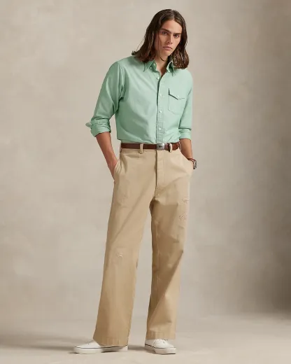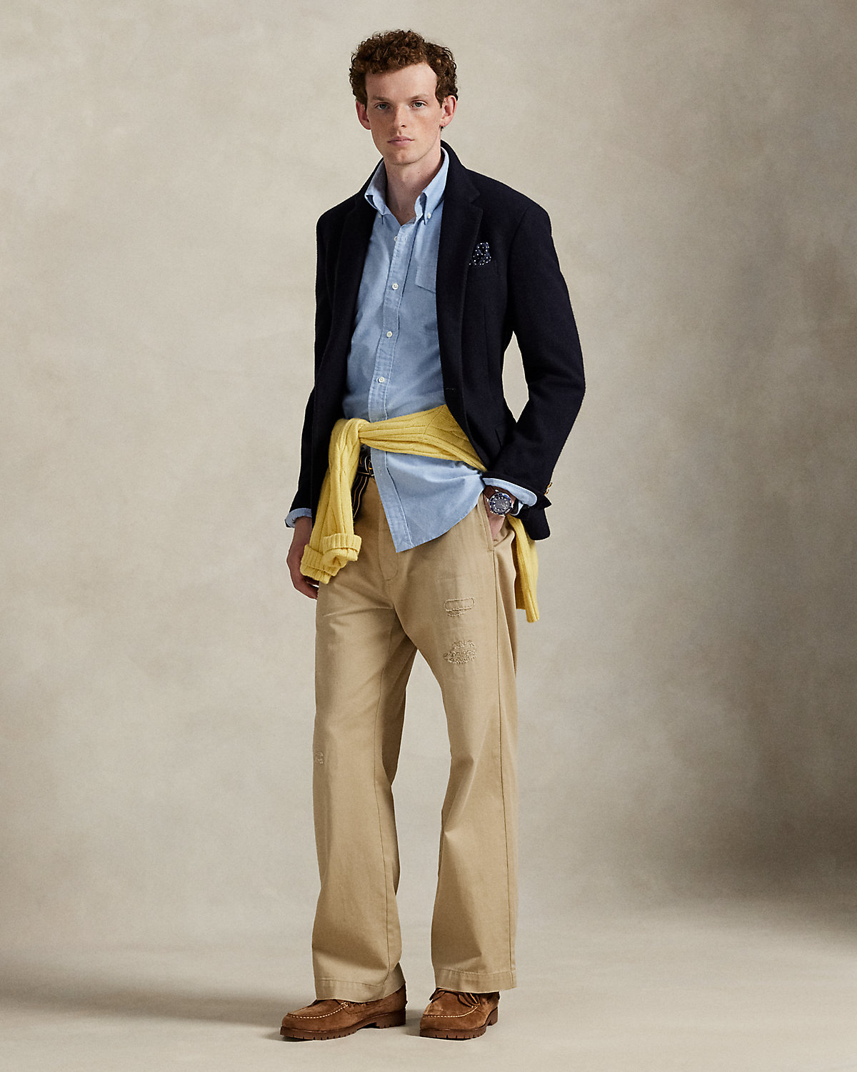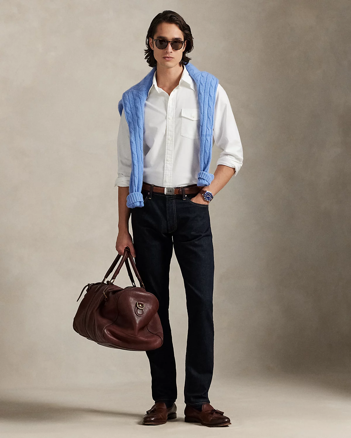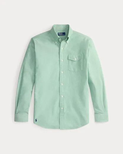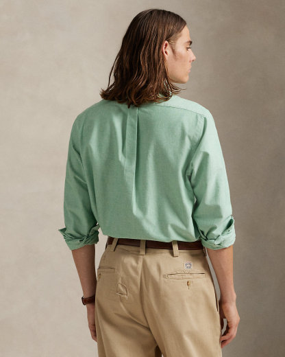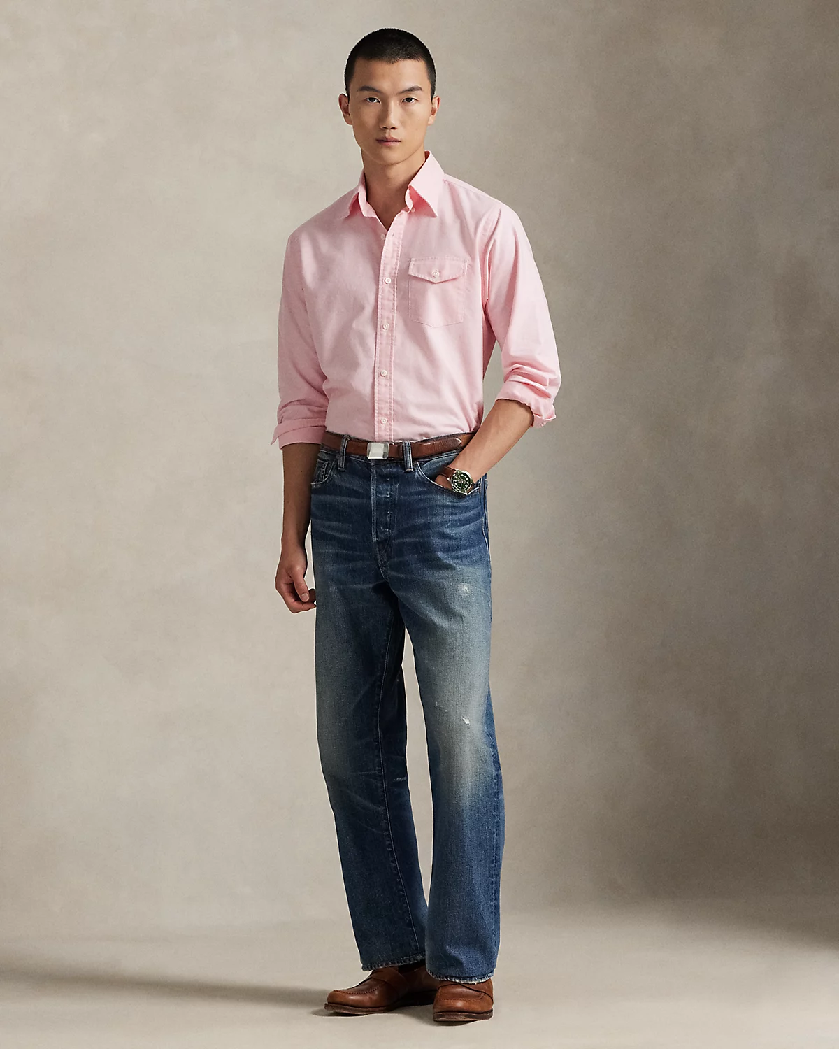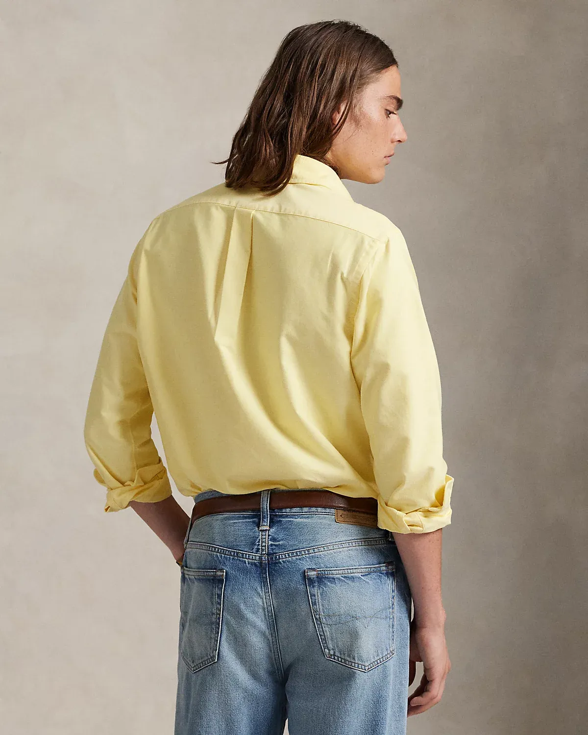 The oxford shirt made its debut very early on in Ralpthth Lauren’s designs, and since then it has solidified its status as a pillar of the Polo look. Our fabric is developed with a secret wash that gives it instant character, ease, and a heathered softness—what we call the perfect “rumple.” The formula is so unique, it’s been kept in a safe for more than three decades. Today, Mr. Lauren continues to create countless variations of his iconic shirt, including this version that is finished with genuine mother-of-pearl divs.