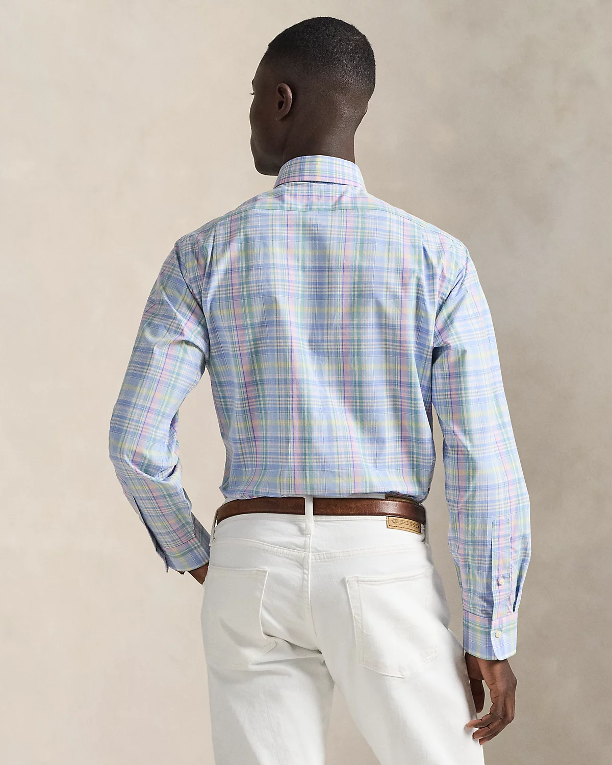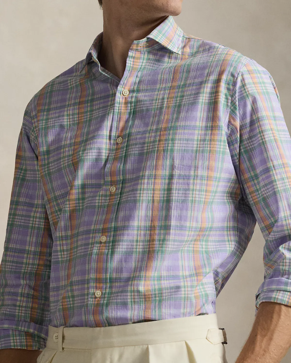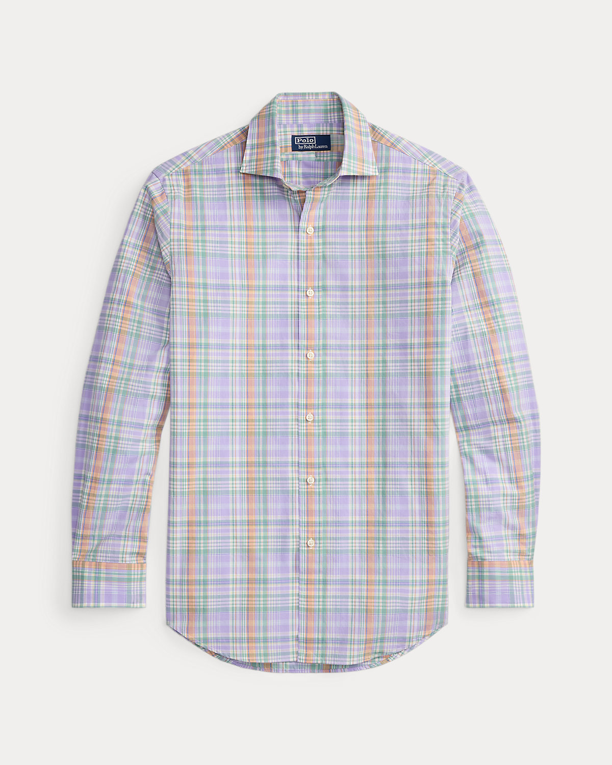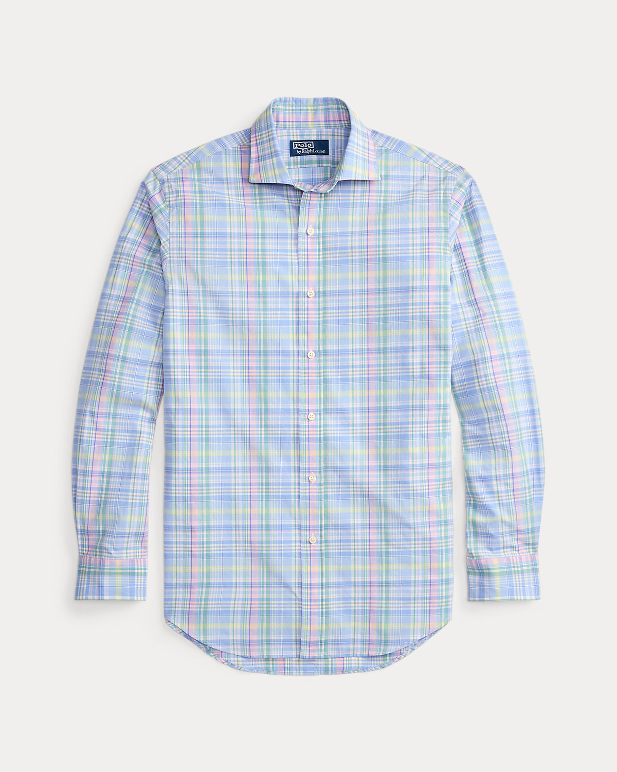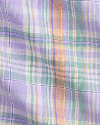 Made with silky cotton poplin, this shirt features a classic plaid pattern rendered in pastel hues.