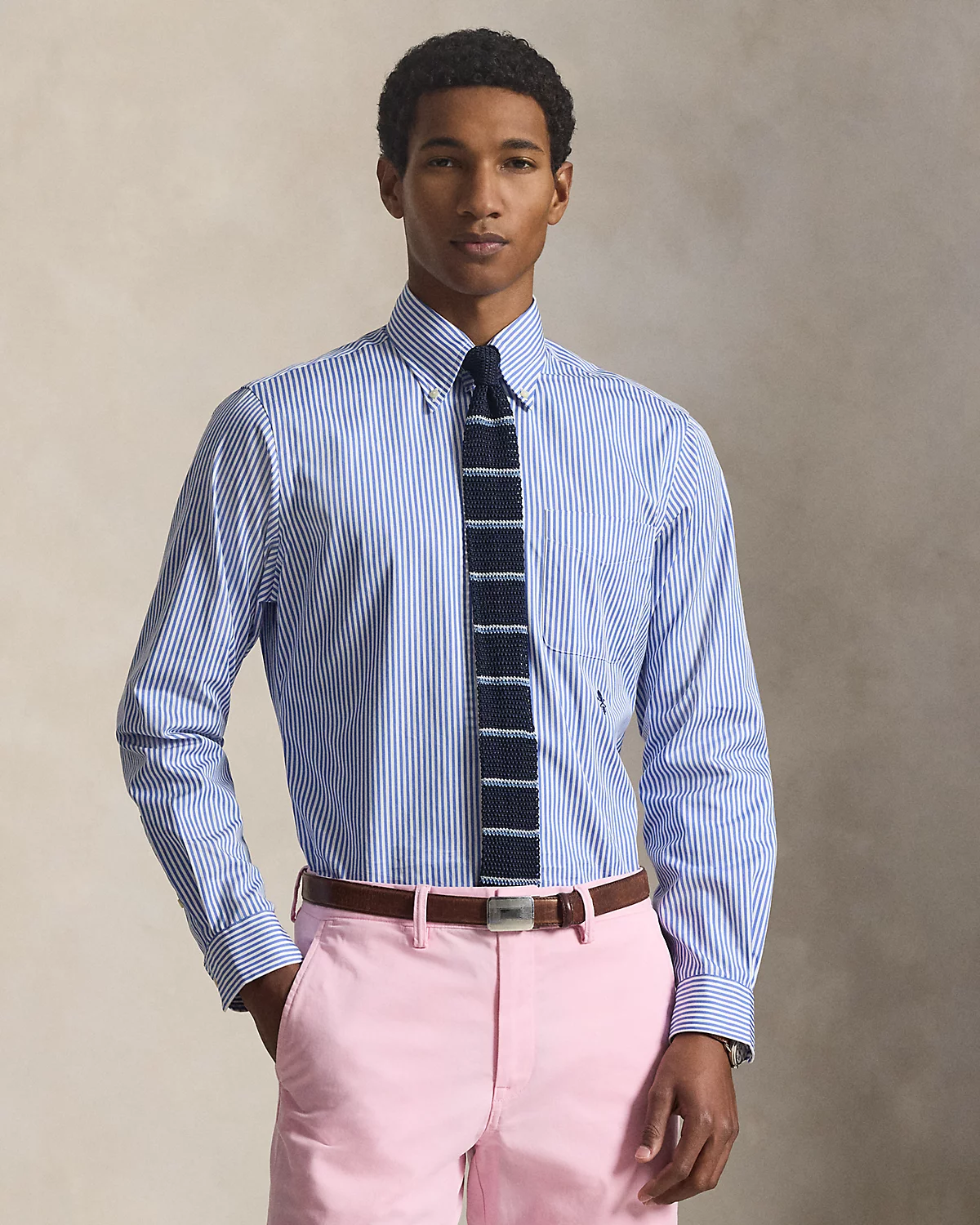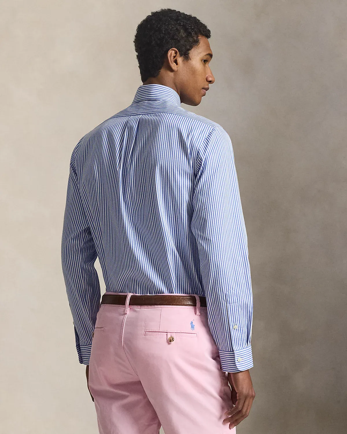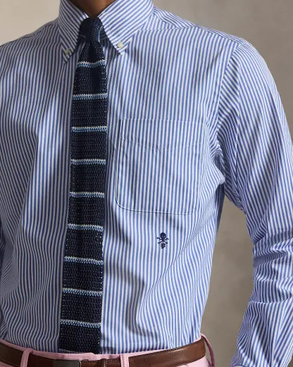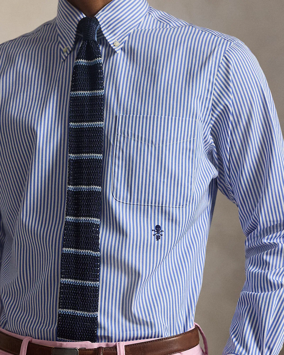This striped shirt is crafted with silky cotton poplin and features signature embroidery at the front left.