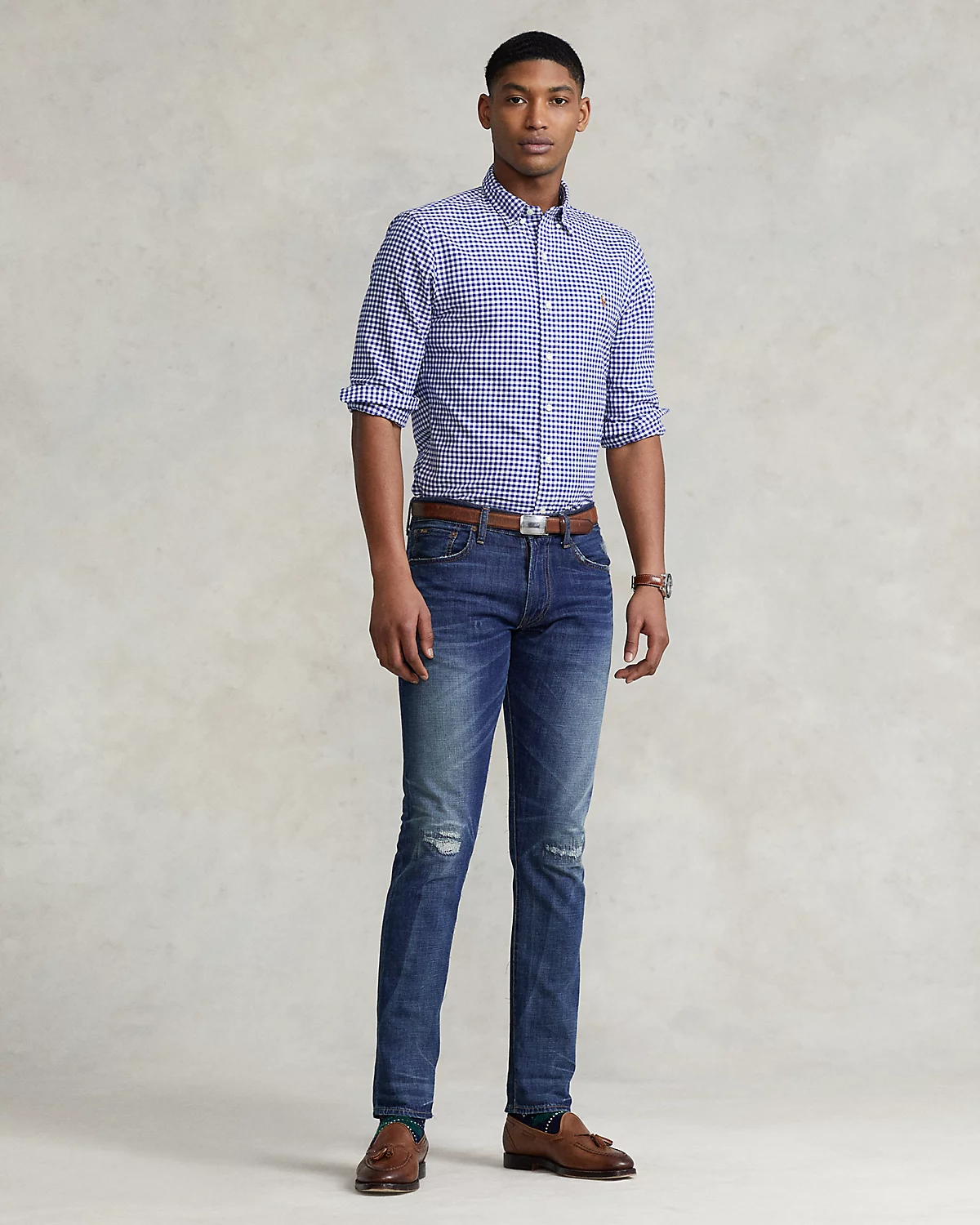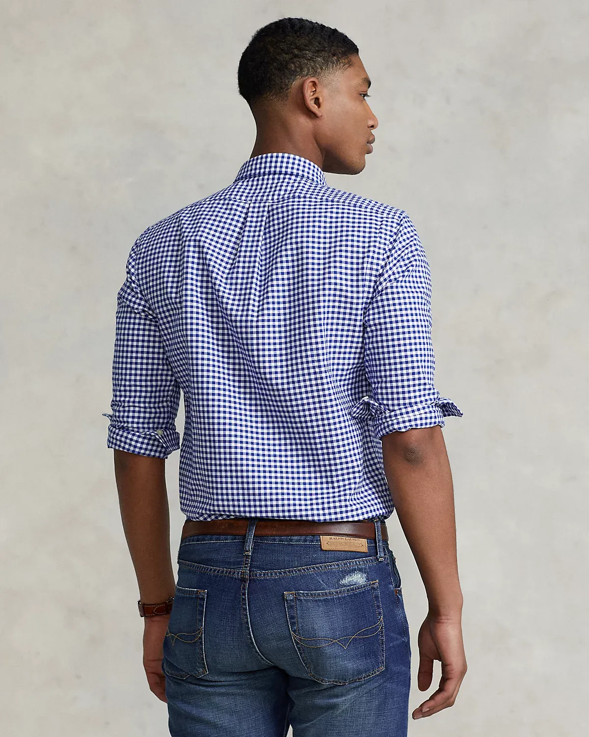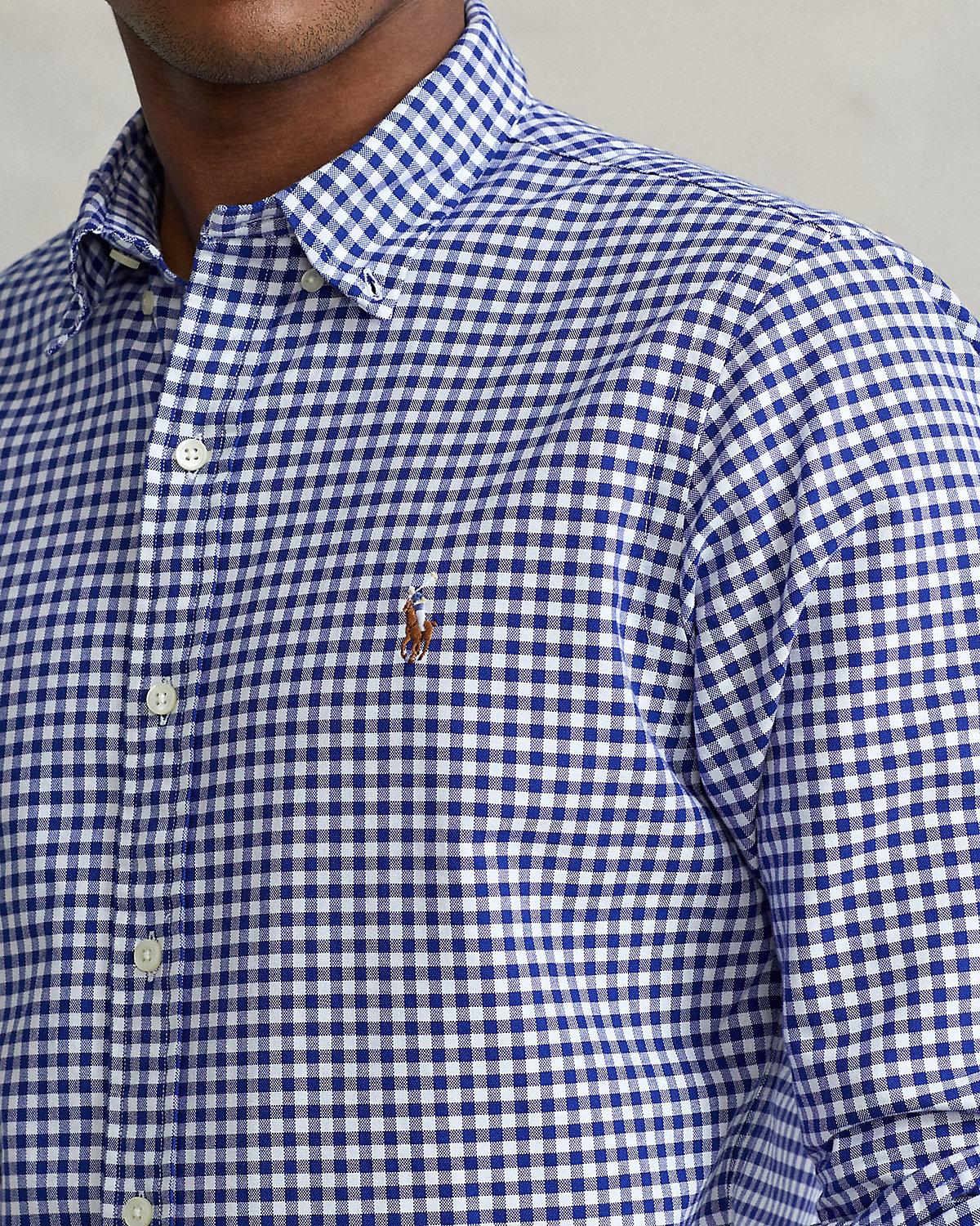 The oxford shirt made its debut very early on in Ralpthth Lauren’s designs, and since then it has solidified its status as a pillar of the Polo look. Our fabric is developed with a secret wash that gives it instant character, ease, and a heathered softness. The formula is so unique, it’s been kept in a safe for more than three decades. In addition to details that evoke its prep-school inspiration, it offers a relaxed feel that produces what we call the perfect “rumple.” Today, Mr. Lauren continues to create countless variations of his iconic shirt, including this gingham version that is embroidered with our multicolored signature Pony.