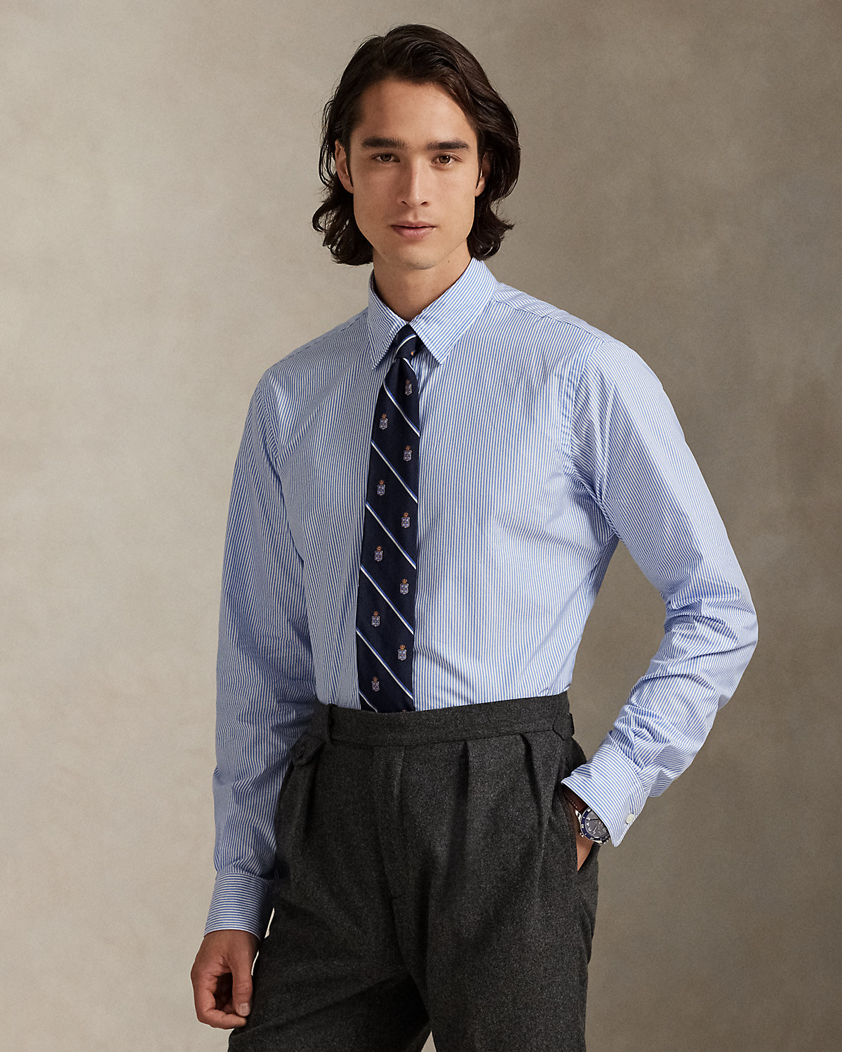 This striped shirt is crafted with 140s-quality, two-ply cotton poplin and finished with genuine mother-of-pearl divs.
