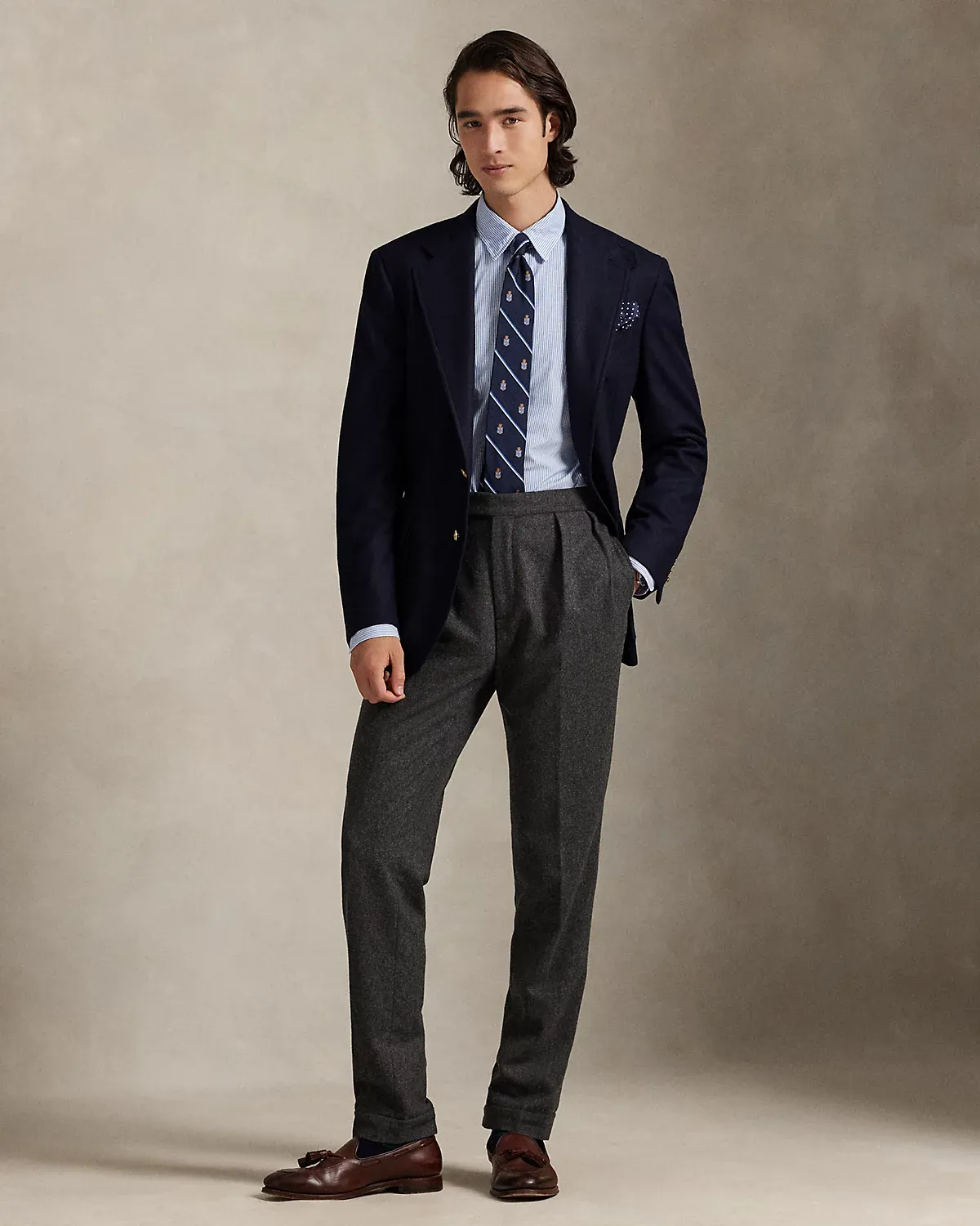 - Split pleated back yoke ensures smooth, contoured shoulders.