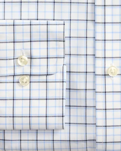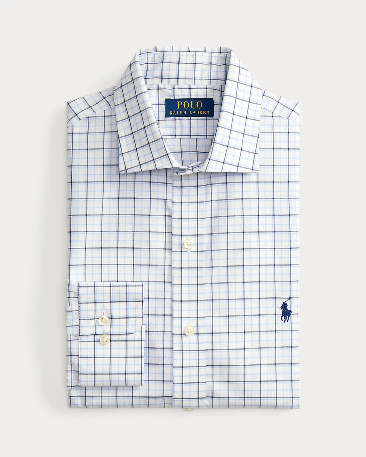 - Split pleated back yoke ensures smooth, contoured shoulders.