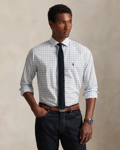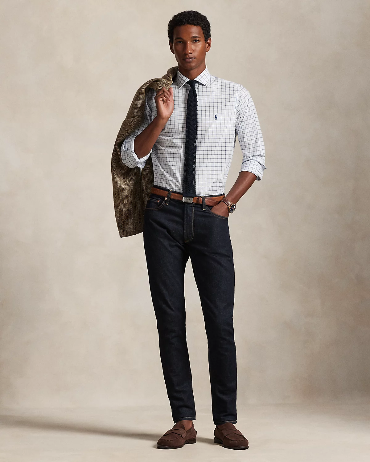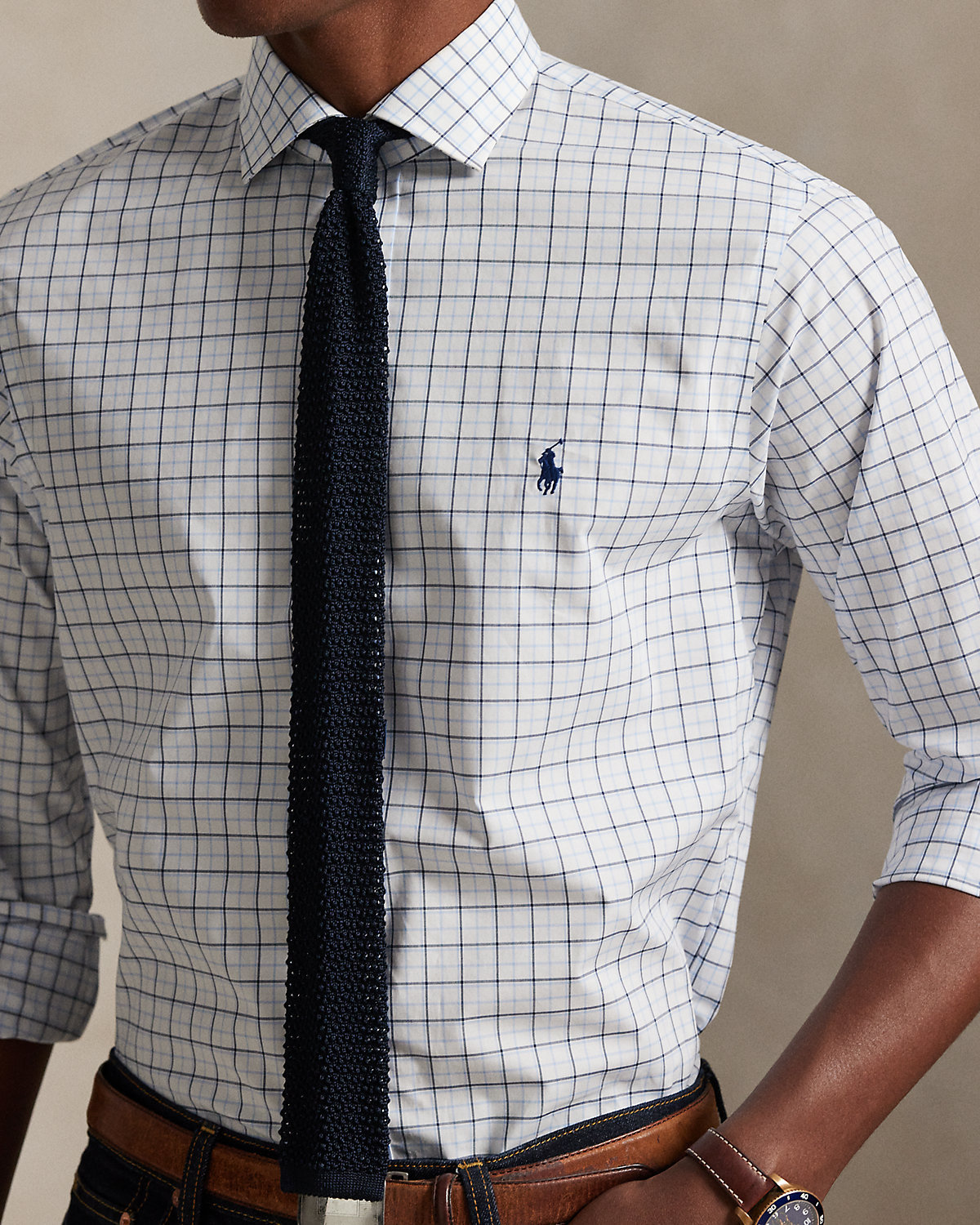 - Custom Fit: a trim silhouette in between our Classic Fit and Slim Fit. Tailored through the waist.