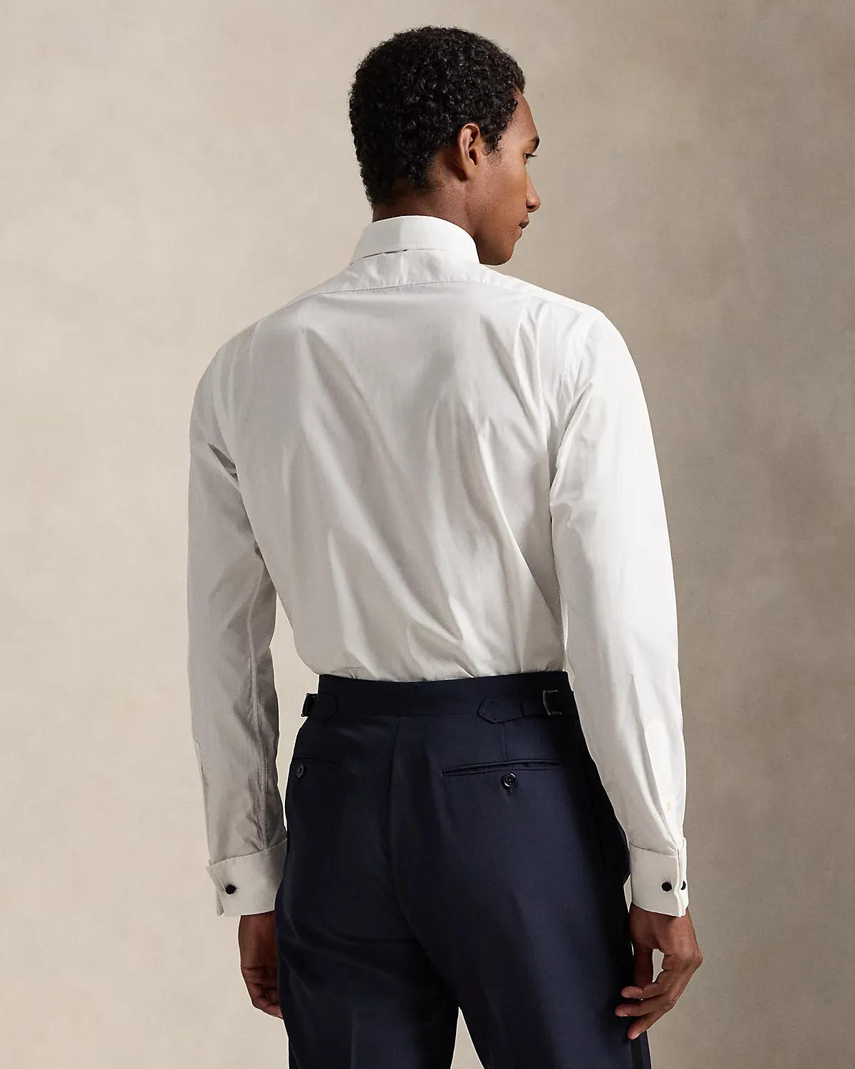 - Long sleeves with French cuffs.