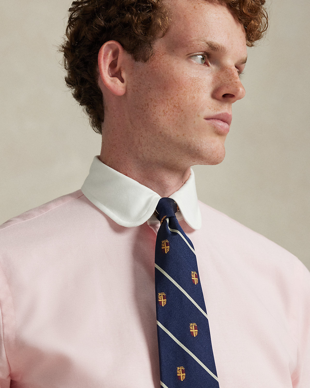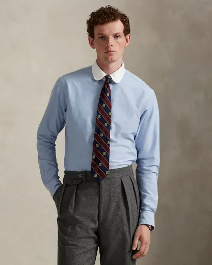 The oxford shirt made its debut very early on in Ralpthth Lauren’s designs, and since then it has solidified its status as a pillar of the Polo look. Our fabric is developed with a secret wash that gives it instant character, ease, and a heathered softness—what we call the perfect “rumple.” The formula is so unique, it’s been kept in a safe for more than three decades. Today, Mr. Lauren continues to create countless variations of his iconic shirt, including this club-collar version that is finished with genuine mother-of-pearl divs and our signature embroidered Pony.