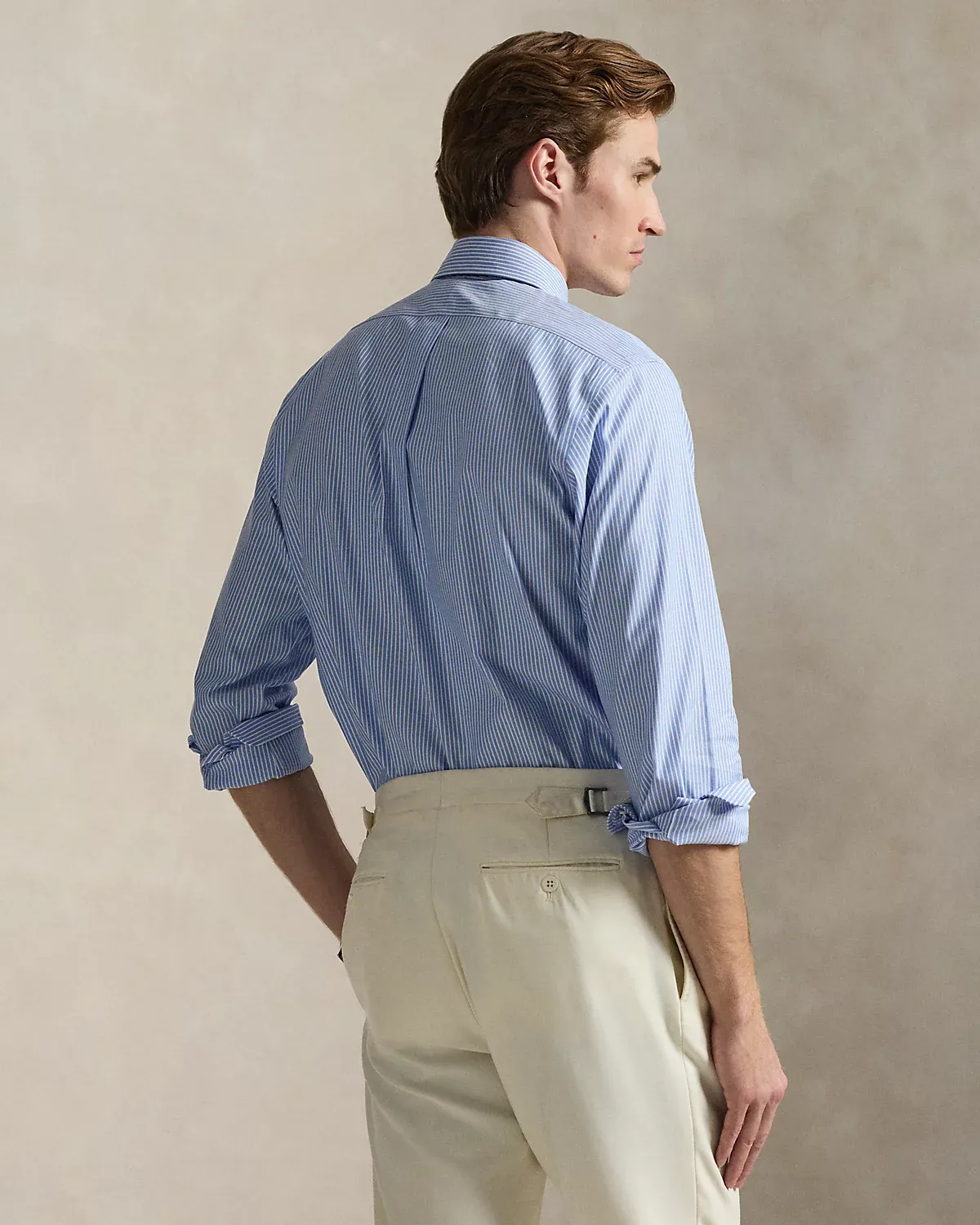 - Custom Fit: a trim silhouette in between our Classic Fit and Slim Fit. Tailored through the waist.